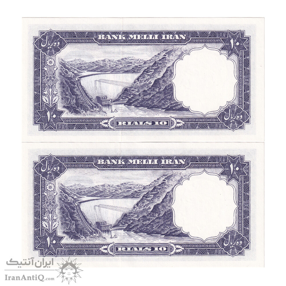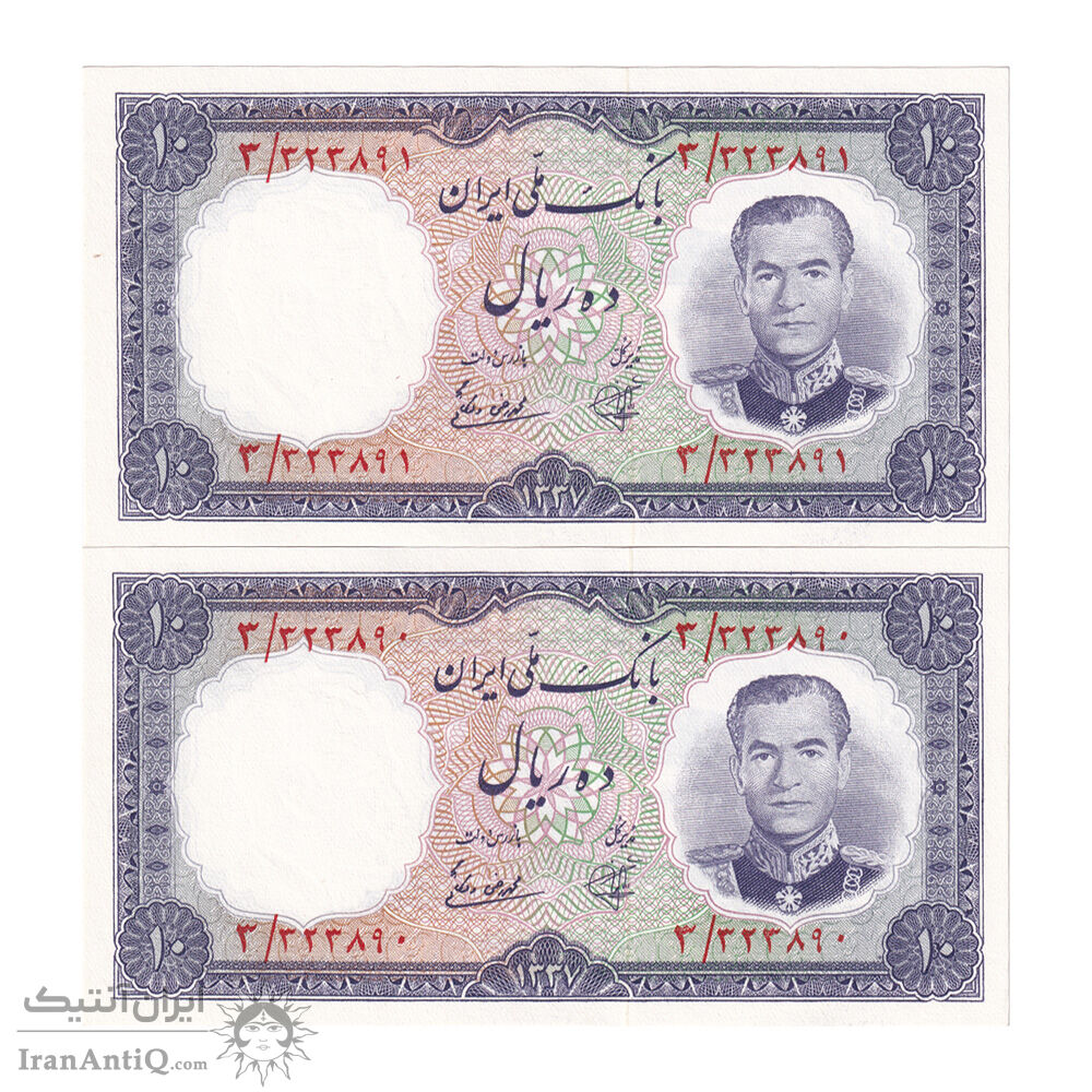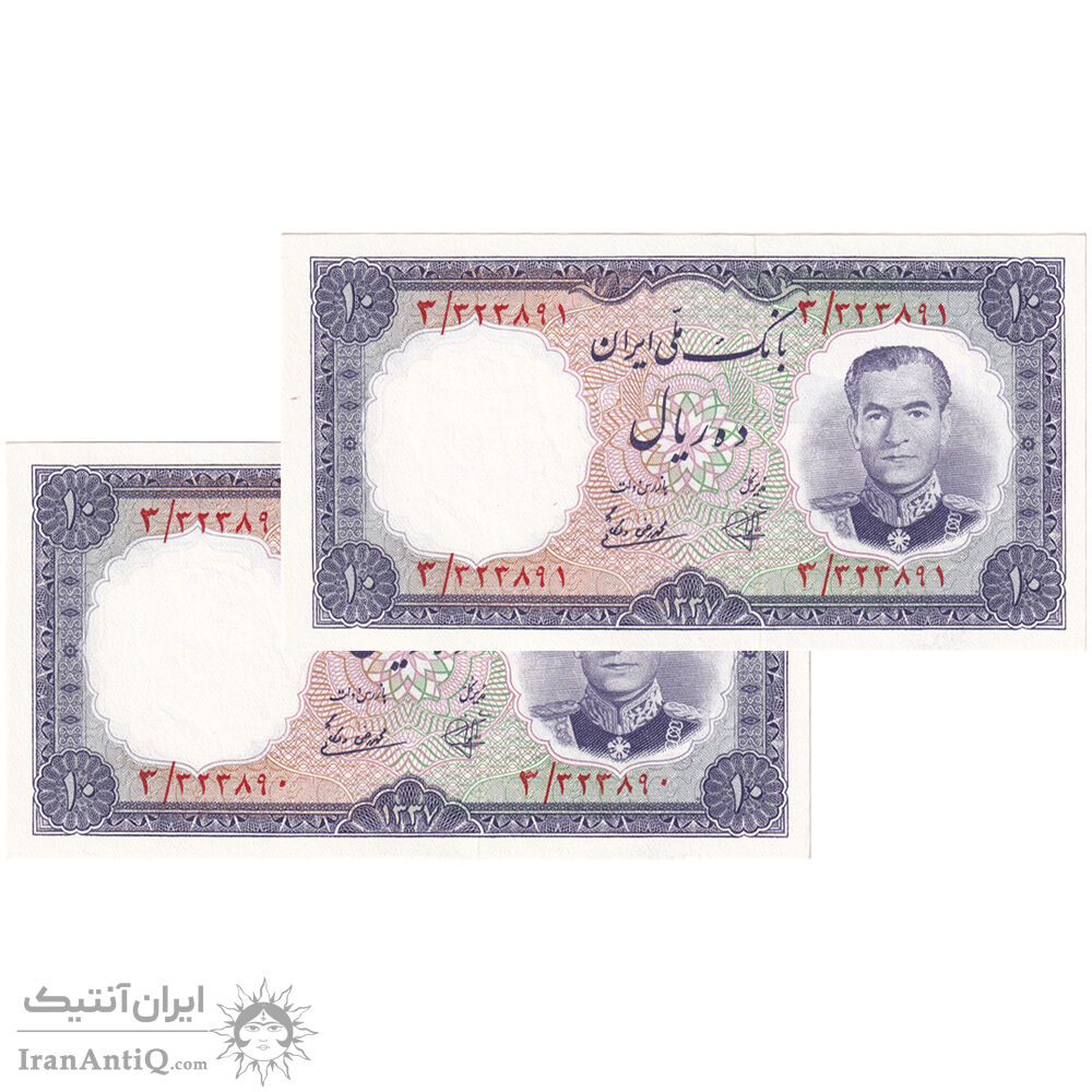 اسکناس 10 ریال 1337 - جفت - UNC64 - محمد رضا شاه