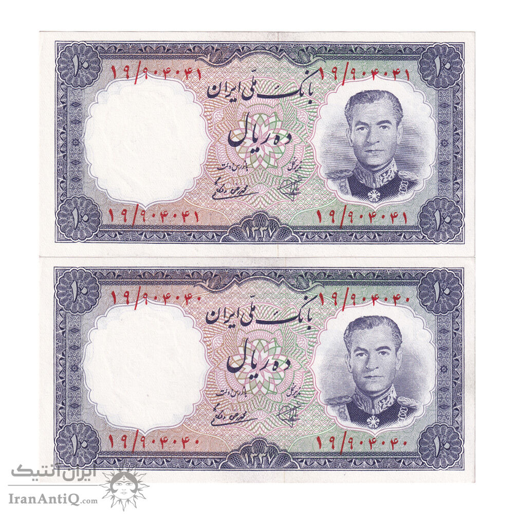 اسکناس 10 ریال 1337 - جفت - UNC63 - محمد رضا شاه