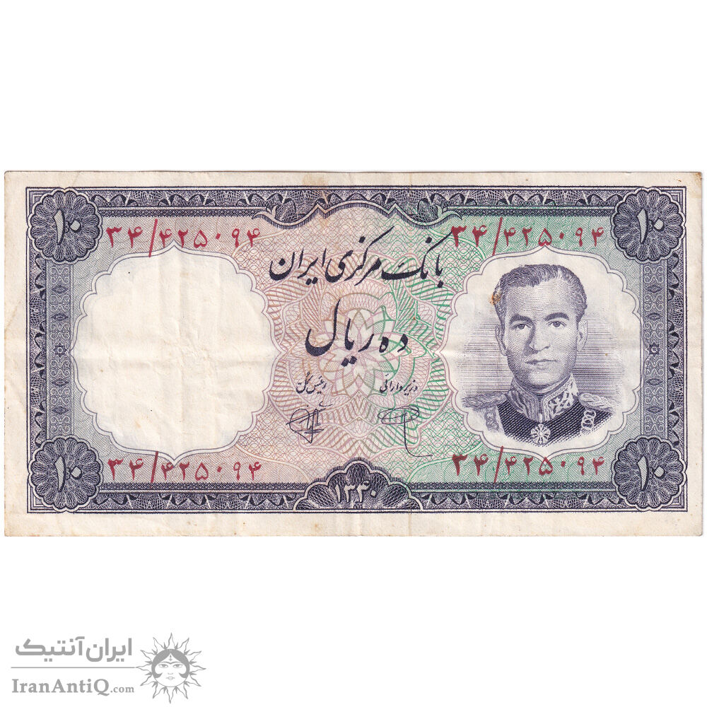 اسکناس 10 ریال 1340 - شماره سیاه - تک - VF35 - محمد رضا شاه