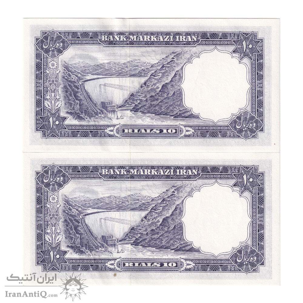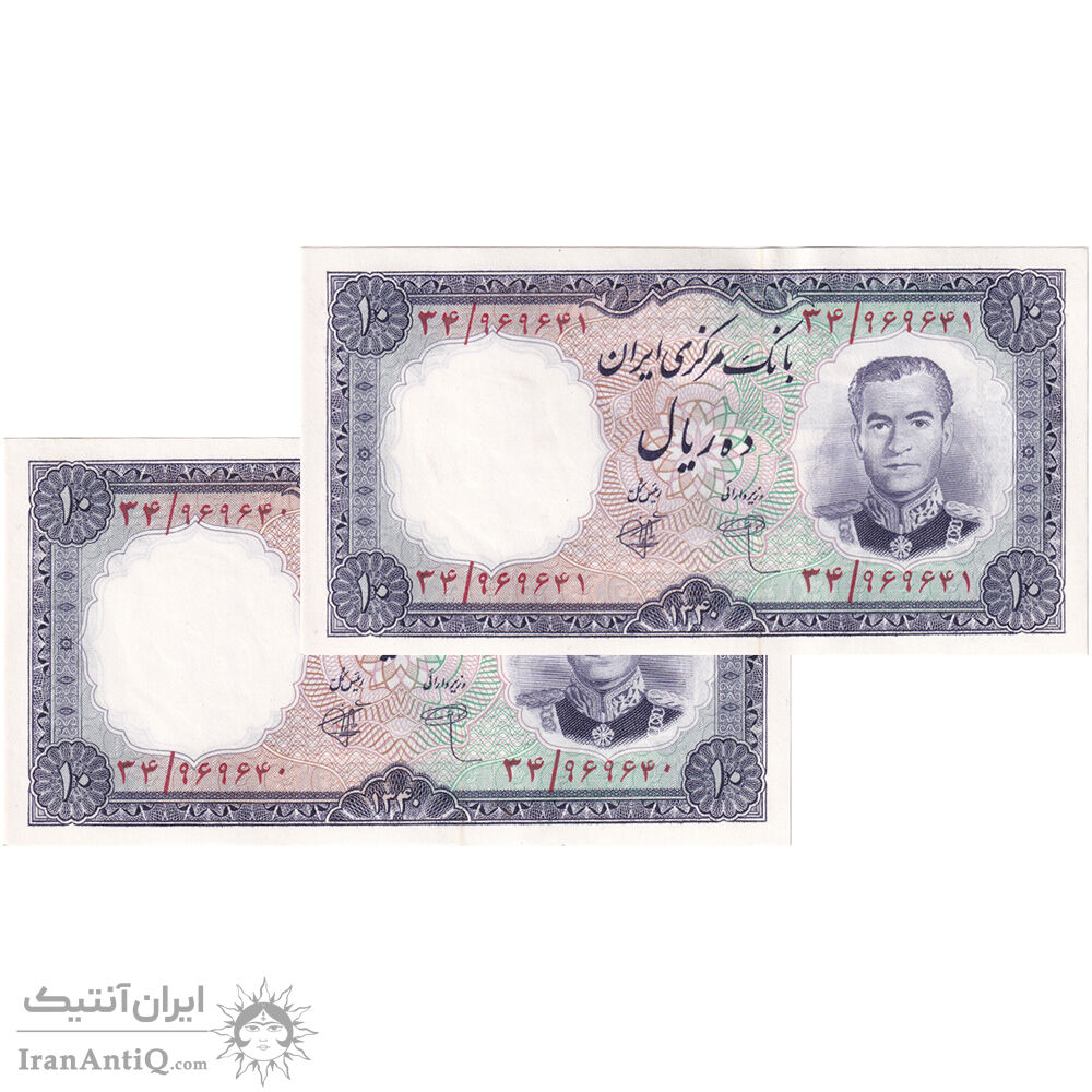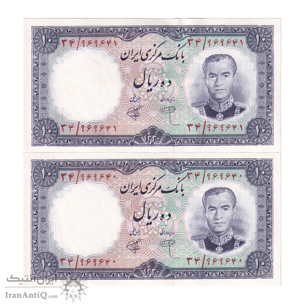 اسکناس 10 ریال 1340 شماره سیاه - جفت - UNC61 - محمد رضا شاه