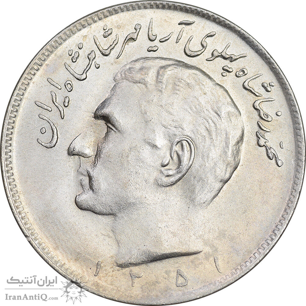 Iran 20 rials 1351 coin - AU58 - mohammad reza shah