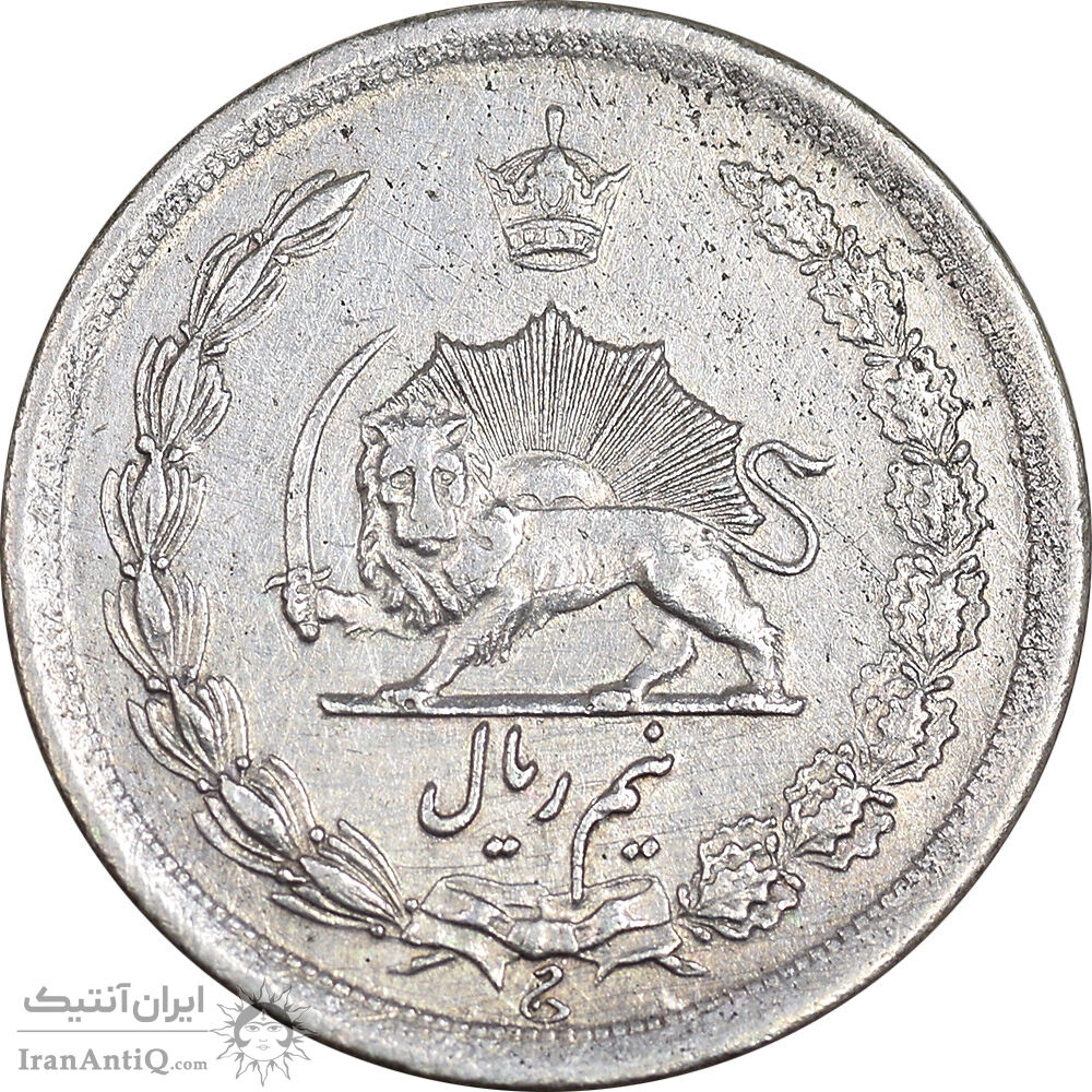 سکه نیم ریال 1312 - EF45 - رضا شاه