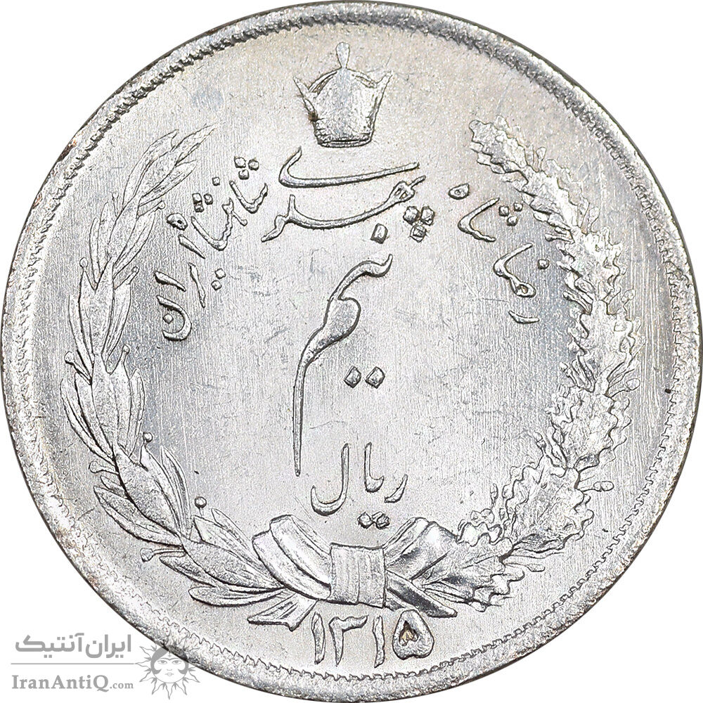 Iran half rial 1315 coin - bold 5 on date - AU55 - reza shah pahlavi