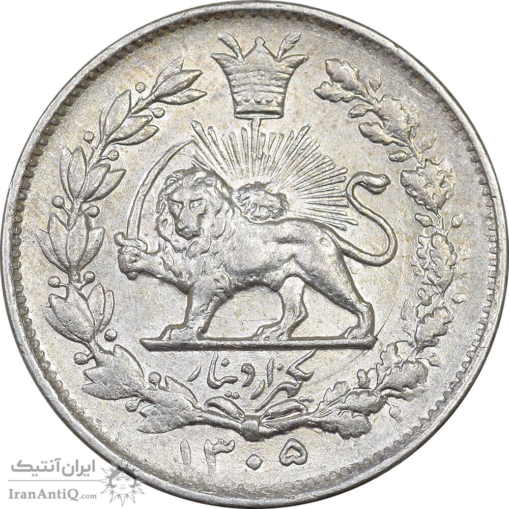 سکه 1000 دینار 1305 خطی - AU55 - رضا شاه