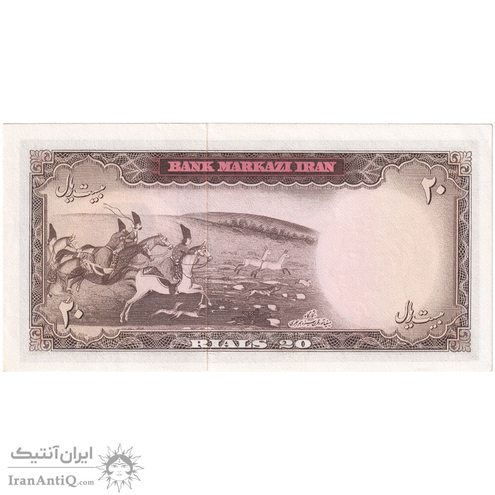 اسکناس 20 ریال (آموزگار - سمیعی) - تک - UNC62 - محمد رضا شاه