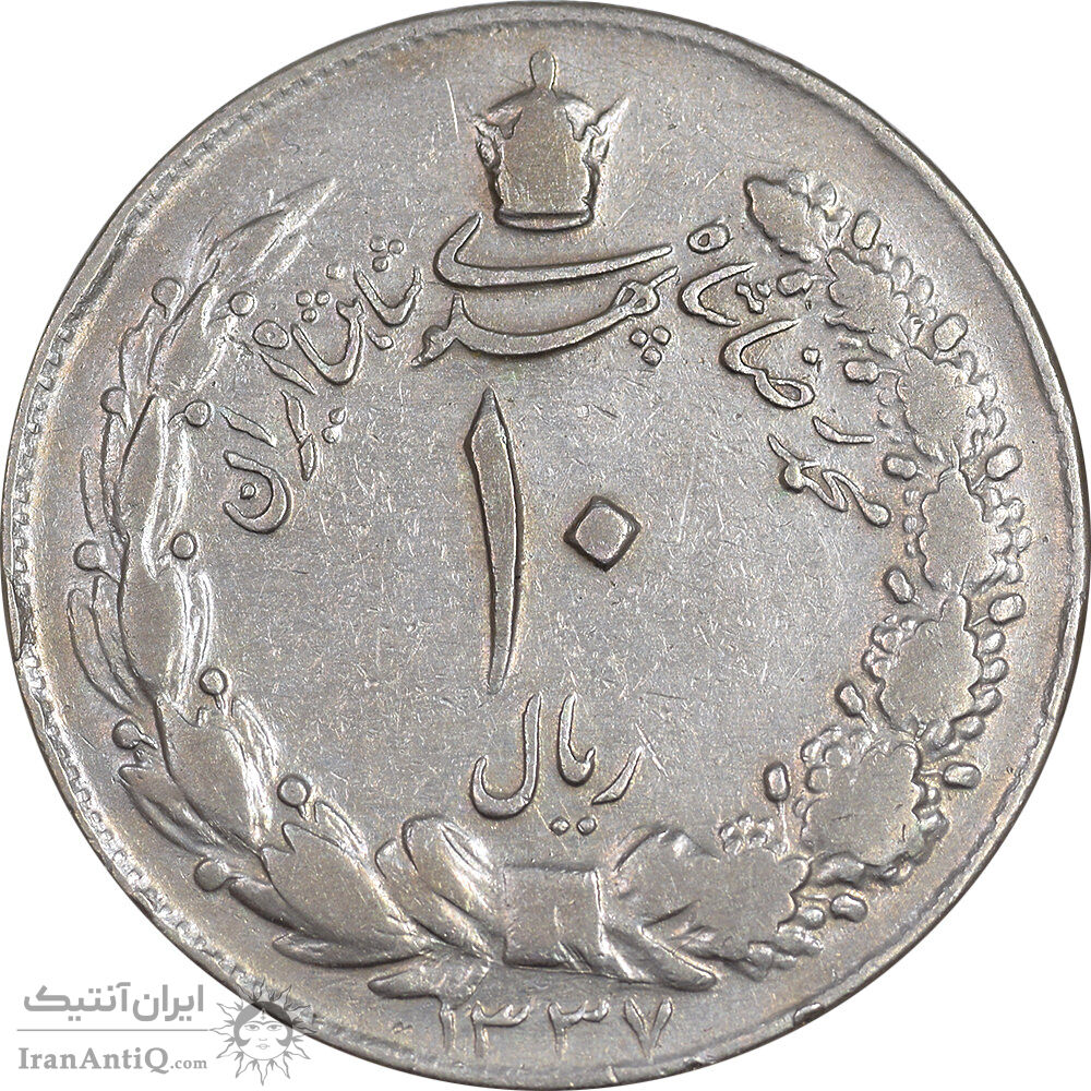 سکه 10 ریال 1337 - VF35 - محمد رضا شاه