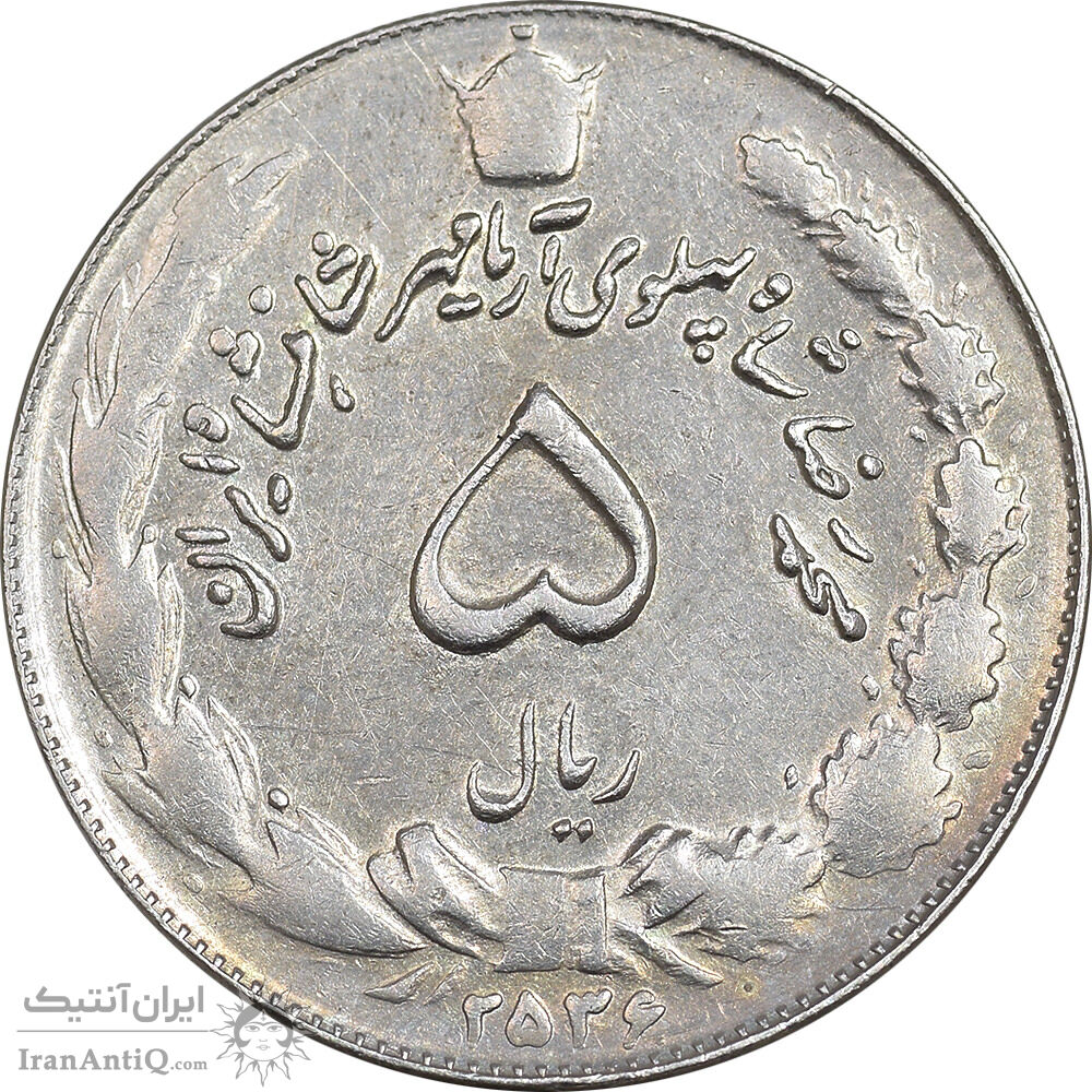 Iran 5 rials 2536 coin - EF45 - mohammad reza shah