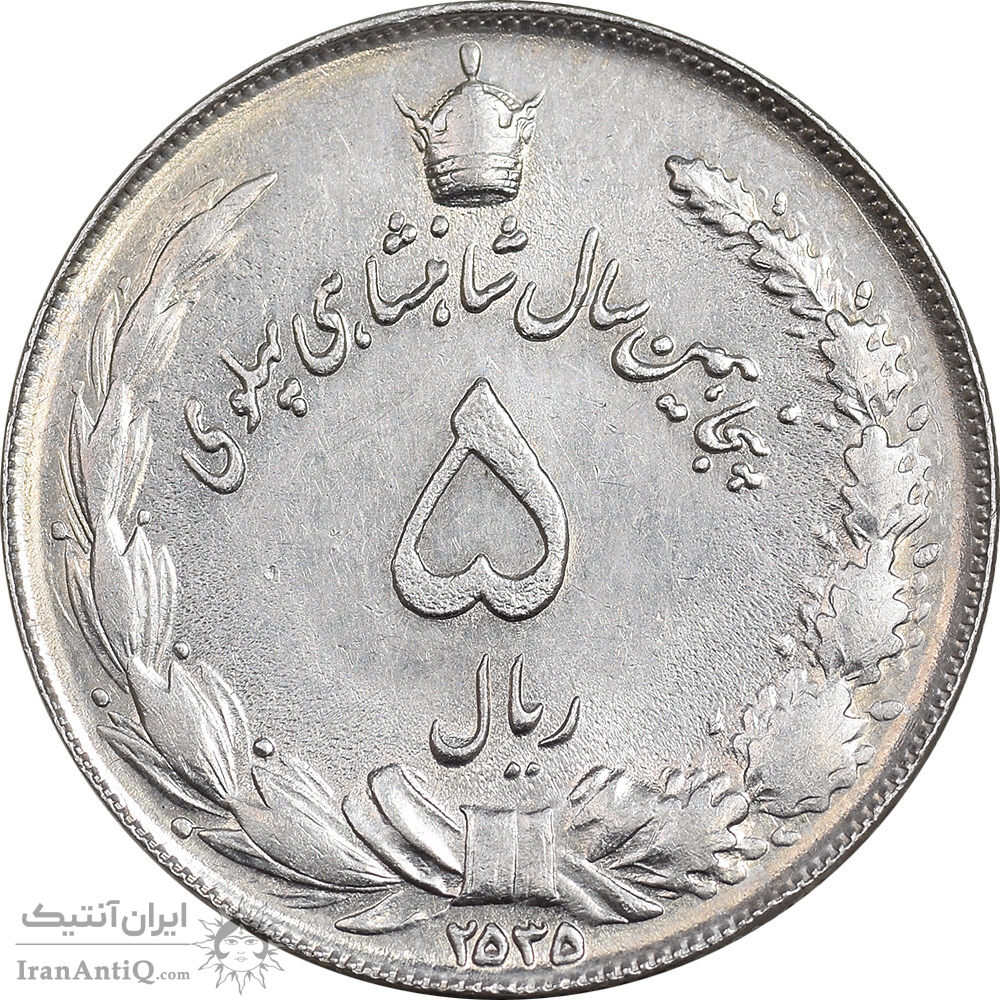 Iran 5 rials 2535 coin - AU55 - mohammad reza shah