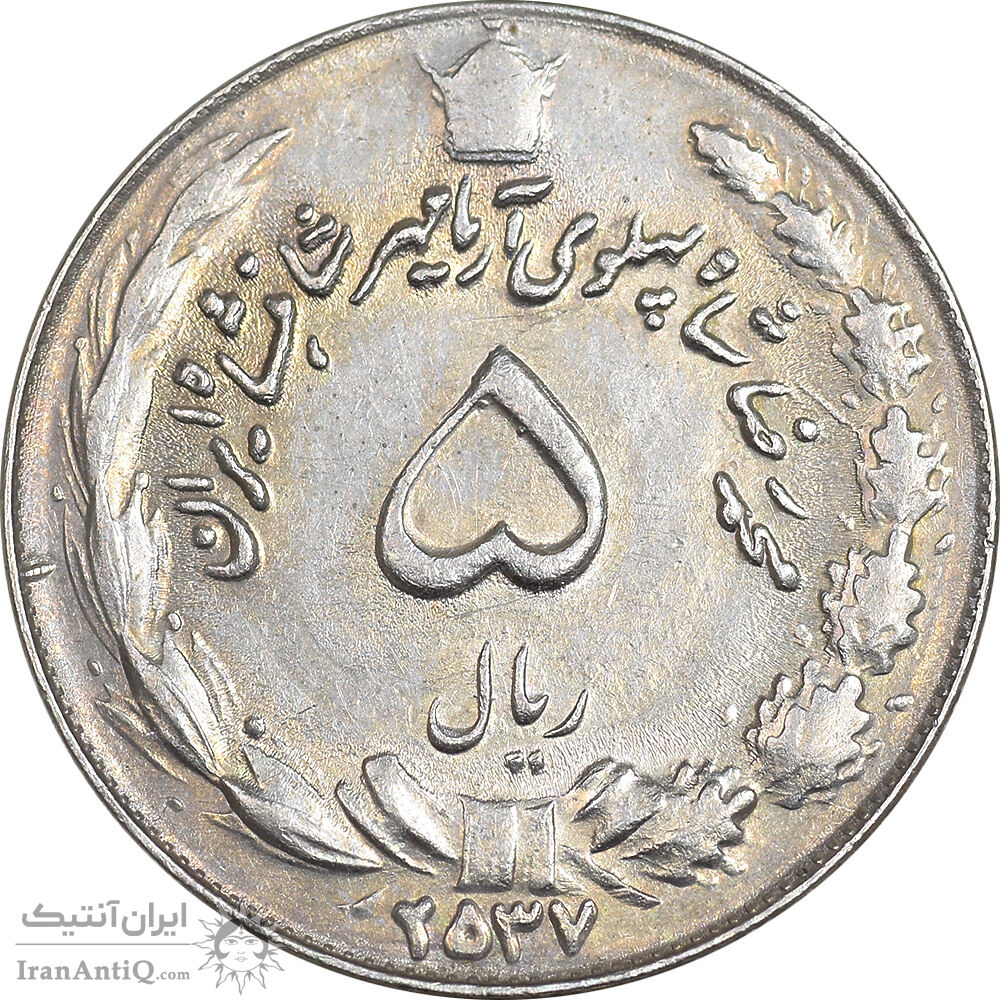 سکه 5 ریال 2537 آریامهر - AU50 - محمد رضا شاه