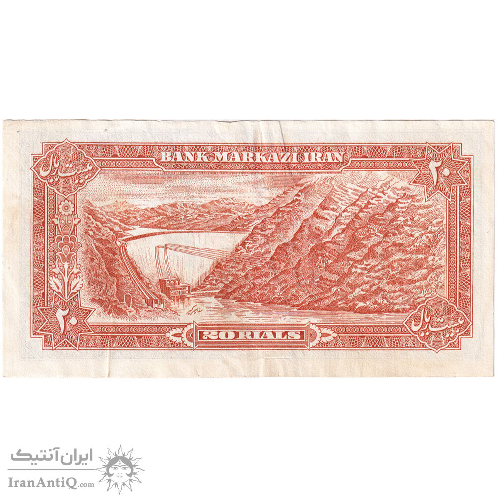 mohammad reza shah 20 rials (ansari - mehran) iran banknote - VF35