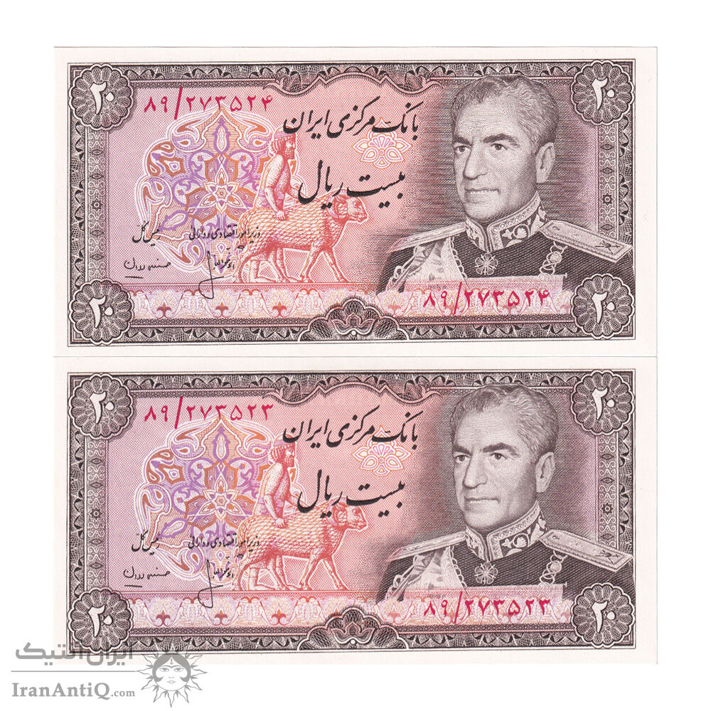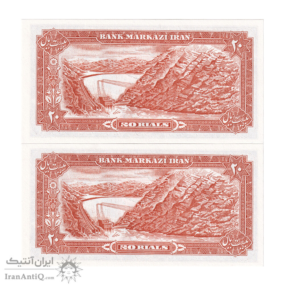 اسکناس 20 ریال (انصاری - مهران) ریال باز - جفت - UNC63 - محمد رضا شاه