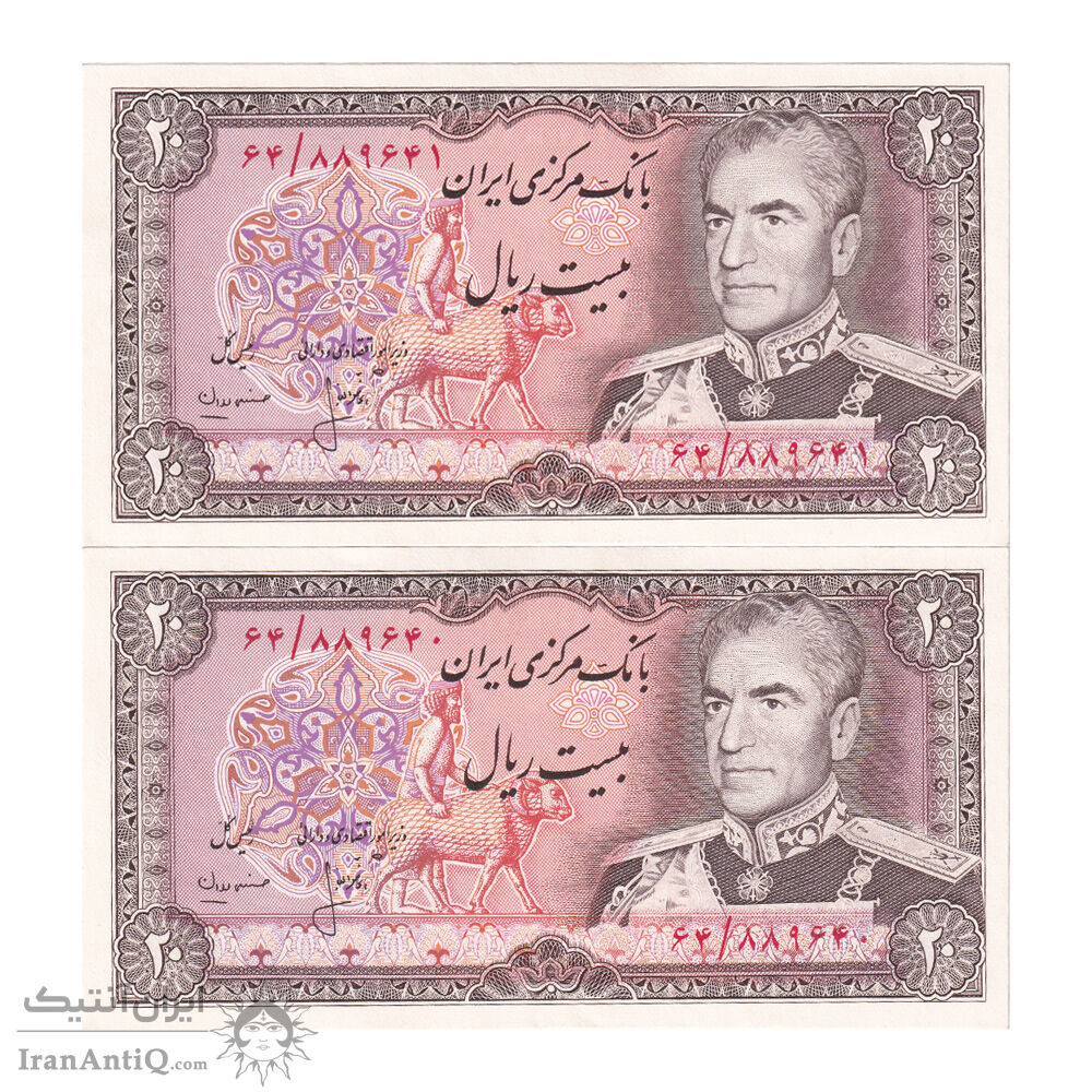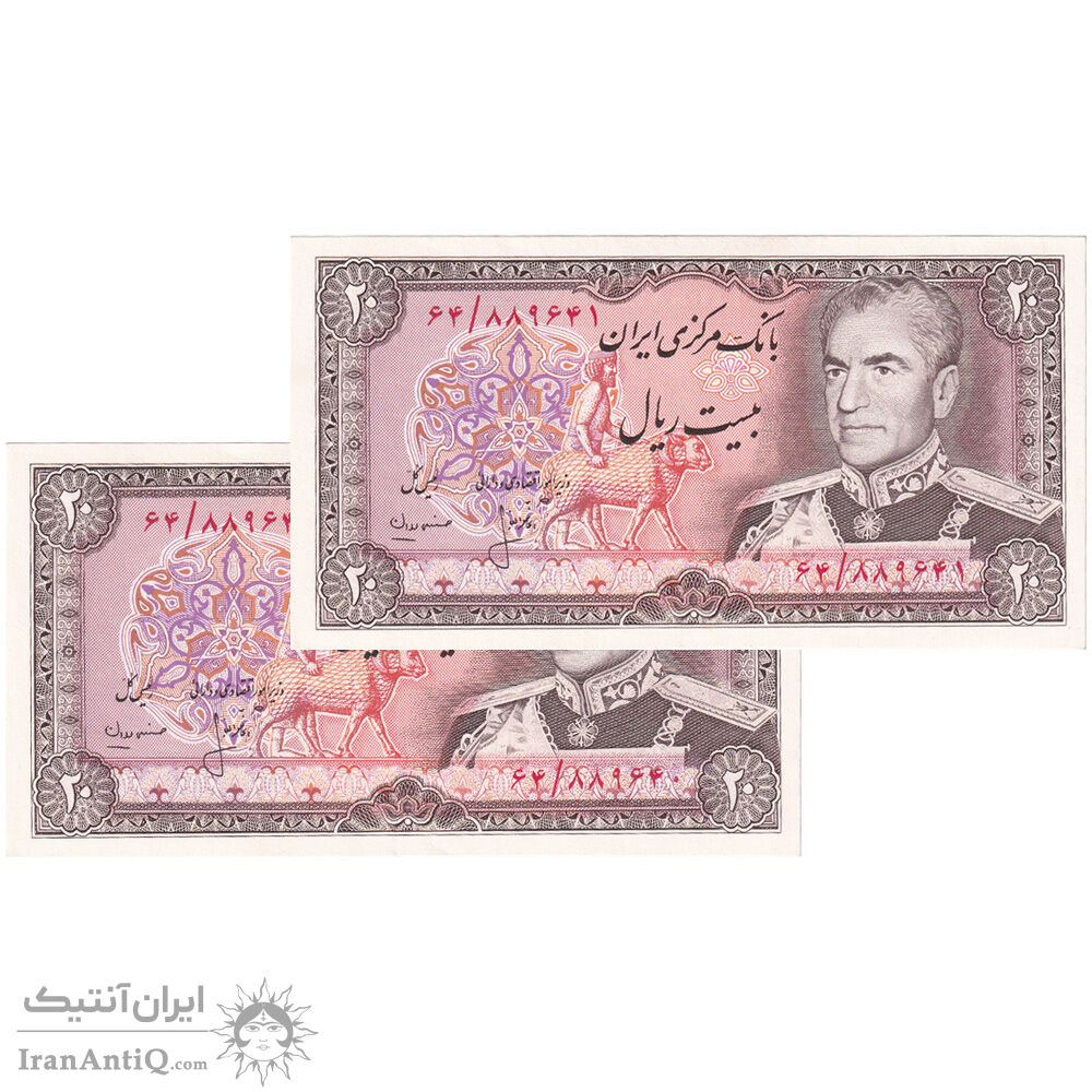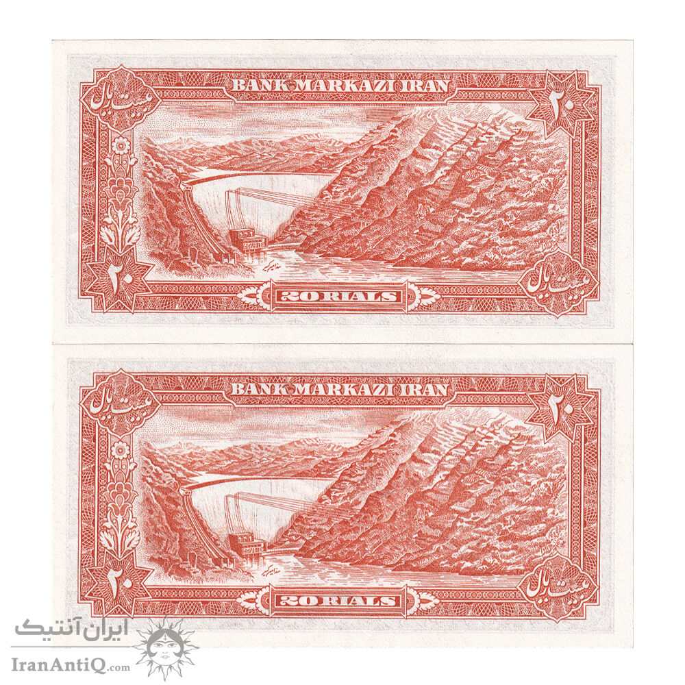 اسکناس 20 ریال (انصاری - مهران) ریال باز - جفت - UNC63 - محمد رضا شاه
