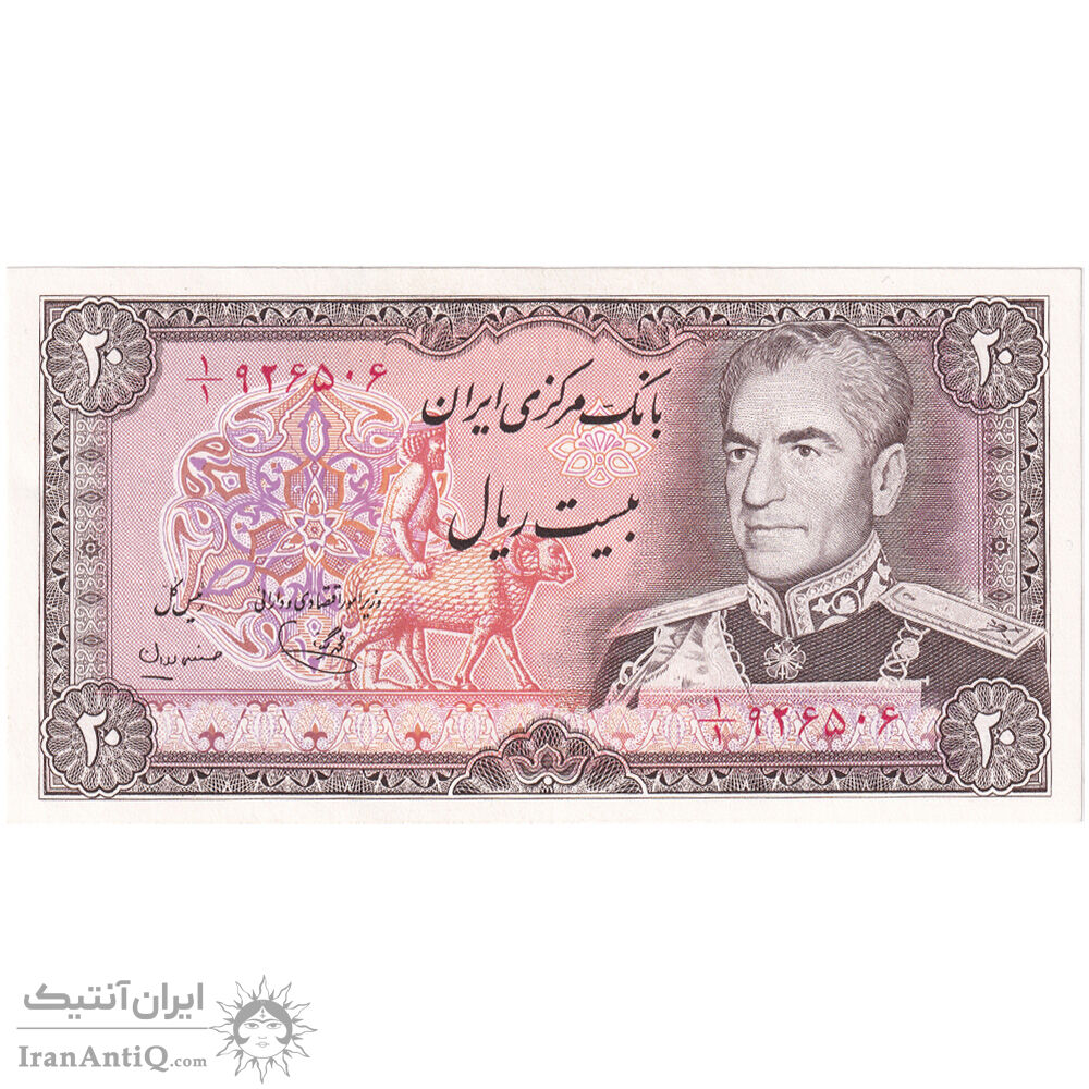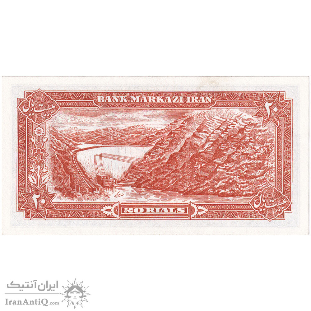 mohammad reza shah 20 rials (yegane - mehran) iran banknote - UNC62