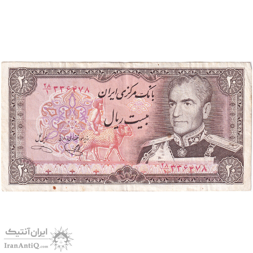 اسکناس 20 ریال (یگانه - خوش کیش) - تک - VF35 - محمد رضا شاه