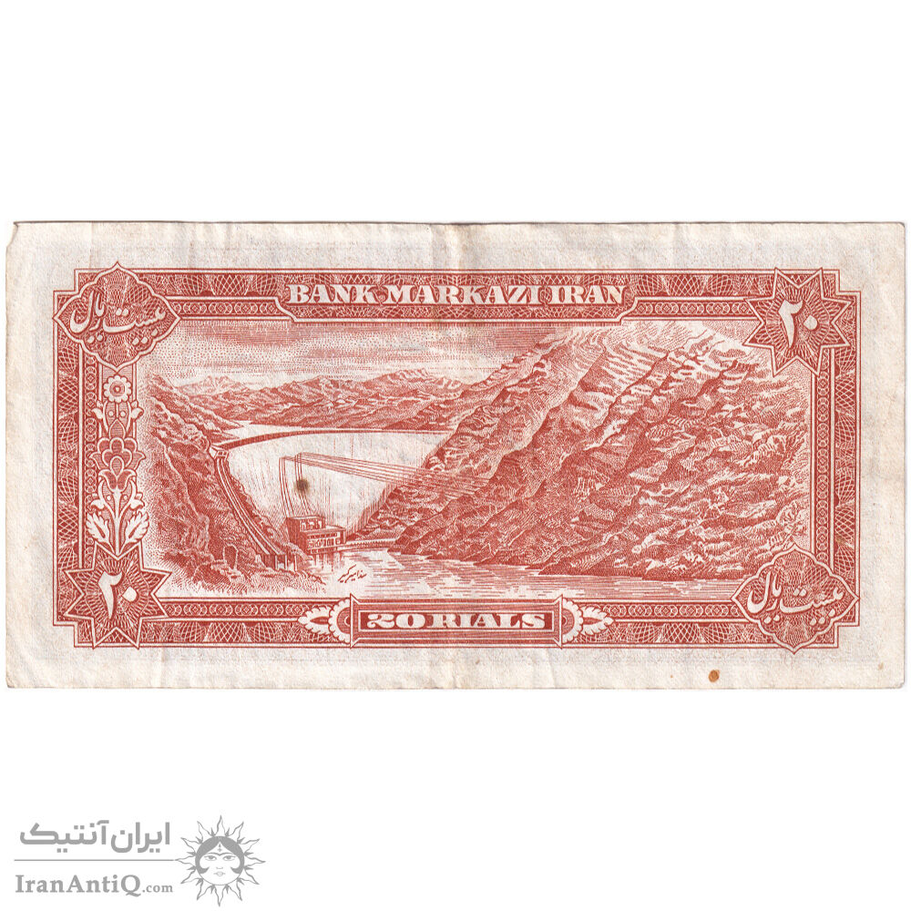 mohammad reza shah 20 rials (yegane - khoshkish) iran banknote - VF35