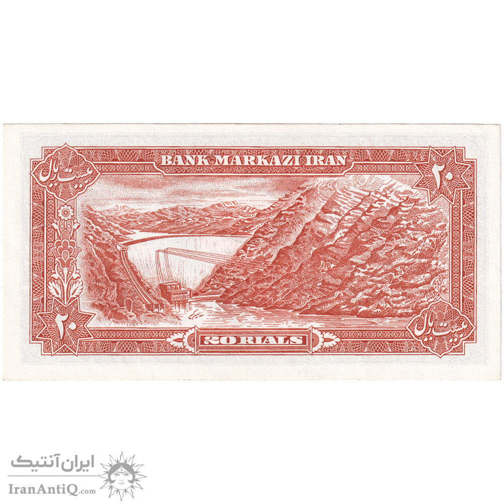 اسکناس 20 ریال (یگانه - خوش کیش) - تک - UNC60 - محمد رضا شاه