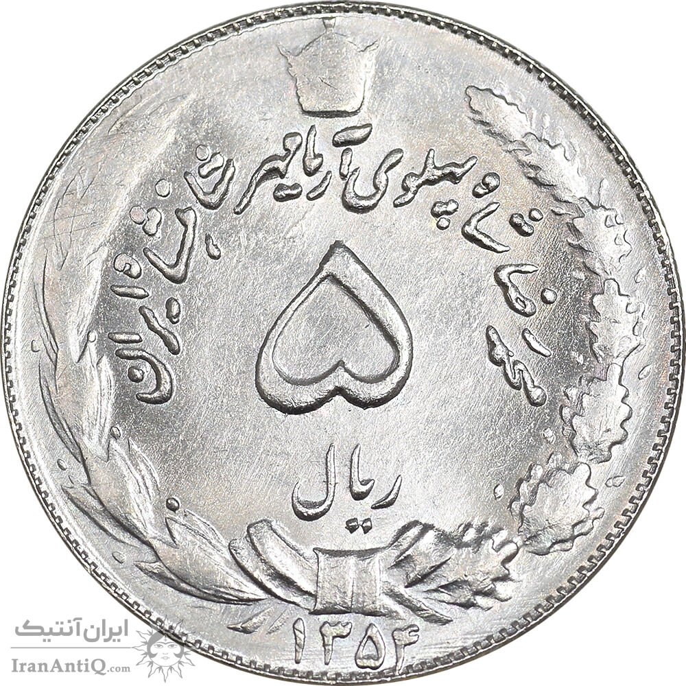 سکه 5 ریال 1354 آریامهر - MS61 - محمد رضا شاه