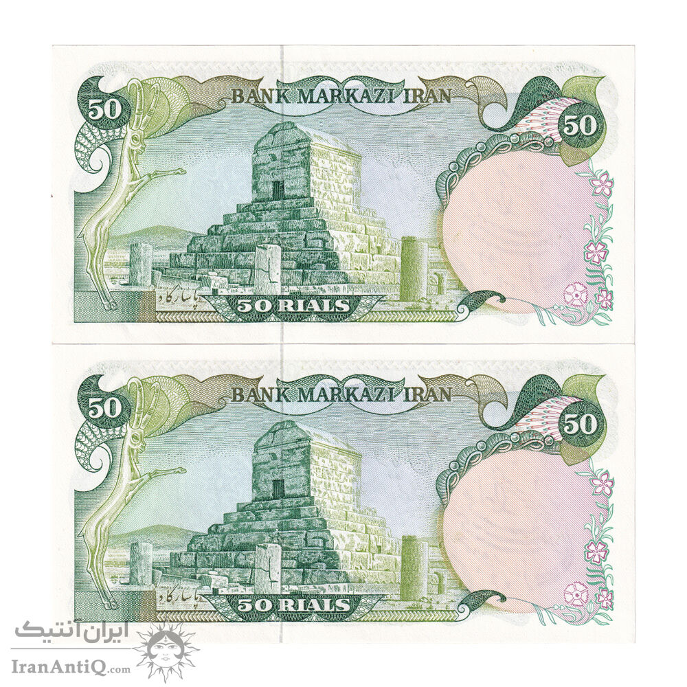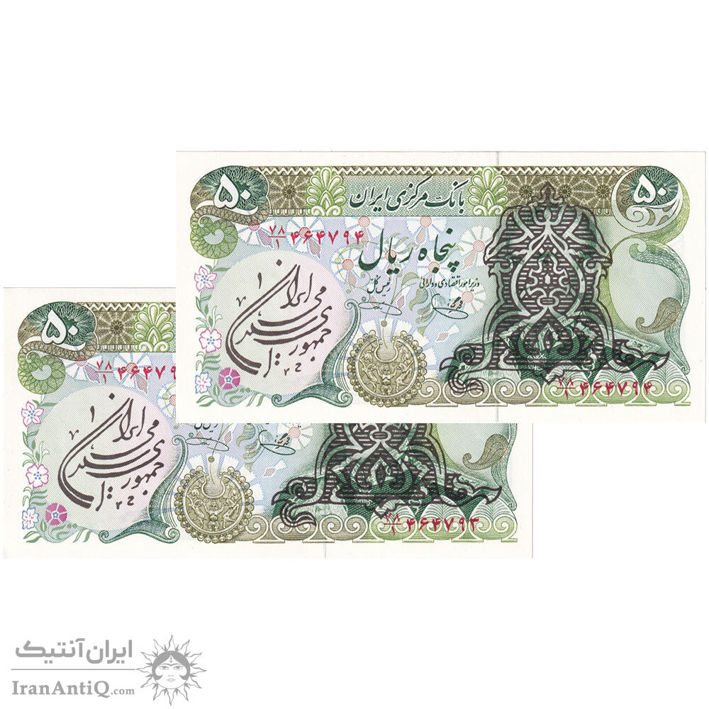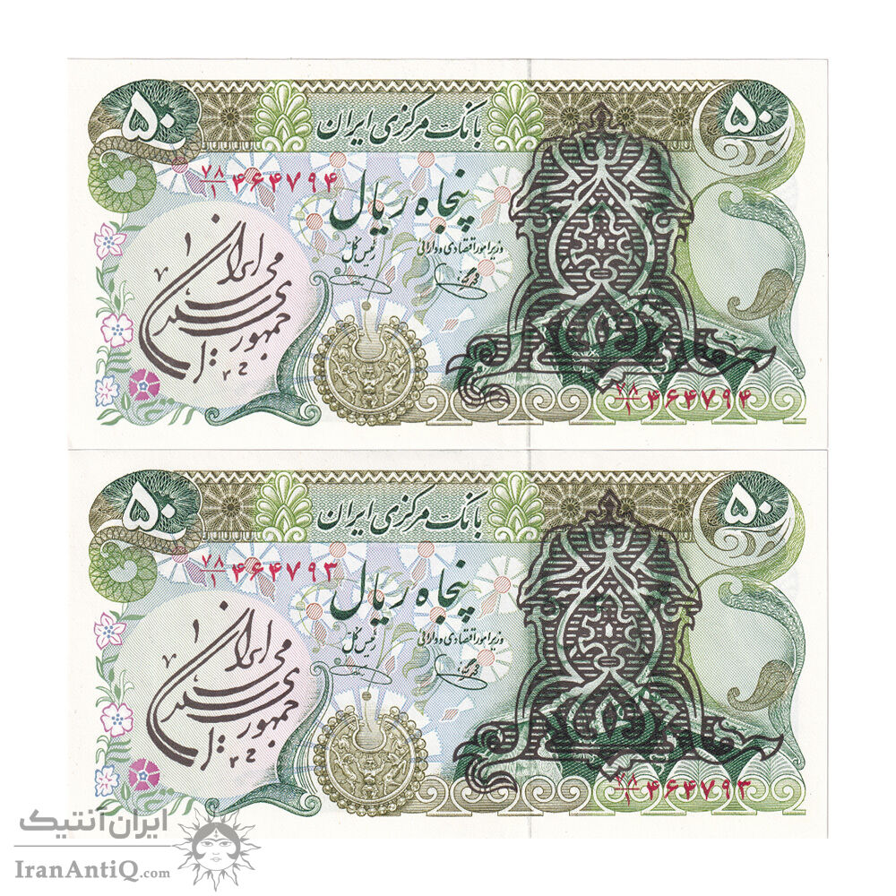 اسکناس 50 ریال سورشارژی (یگانه - خوش کیش) مهر جمهوری - جفت - UNC63 - جمهوری اسلامی