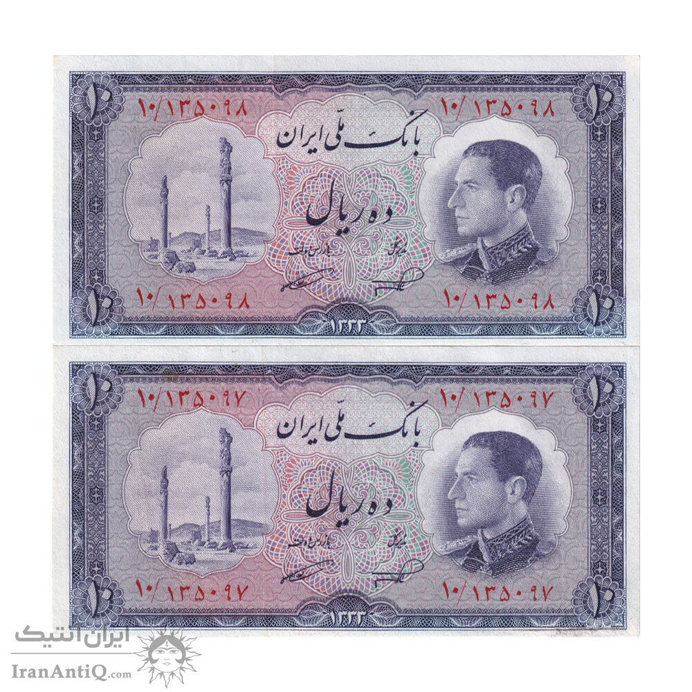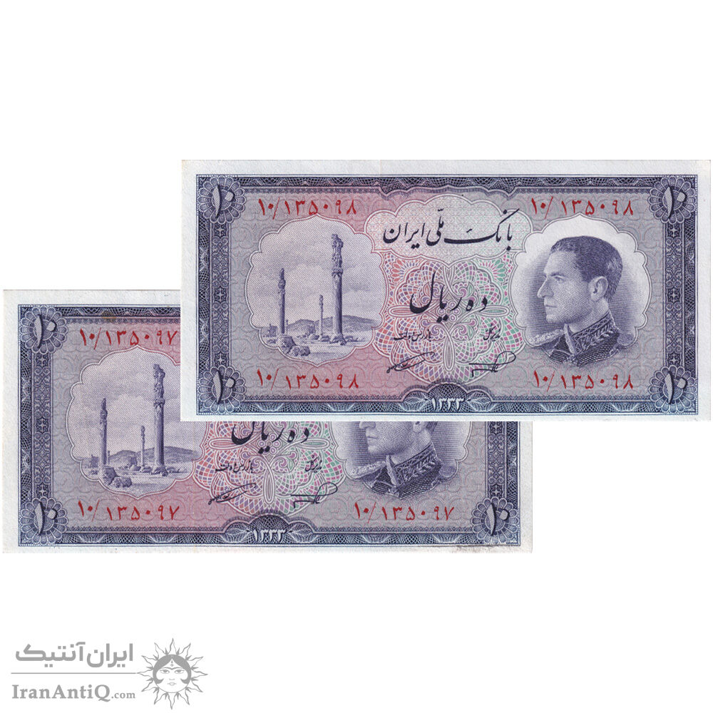 اسکناس 10 ریال 1333 - جفت - EF40 - محمد رضا شاه