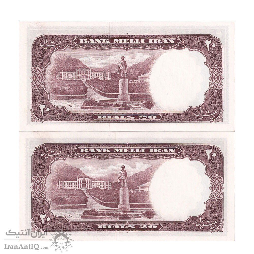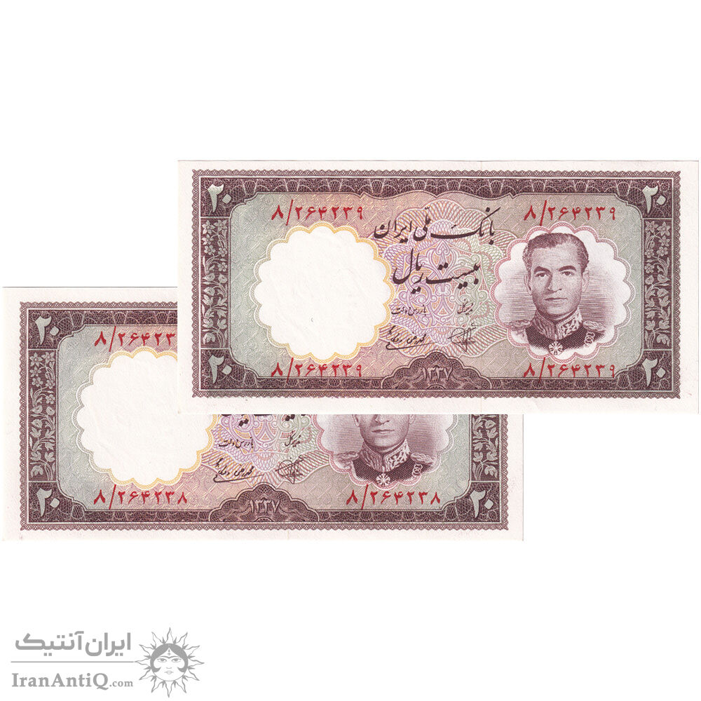 اسکناس 20 ریال 1337 - جفت - UNC63 - محمد رضا شاه