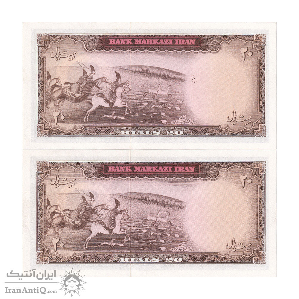 اسکناس 20 ریال (بهنیا - سمیعی) - جفت - UNC63 - محمد رضا شاه