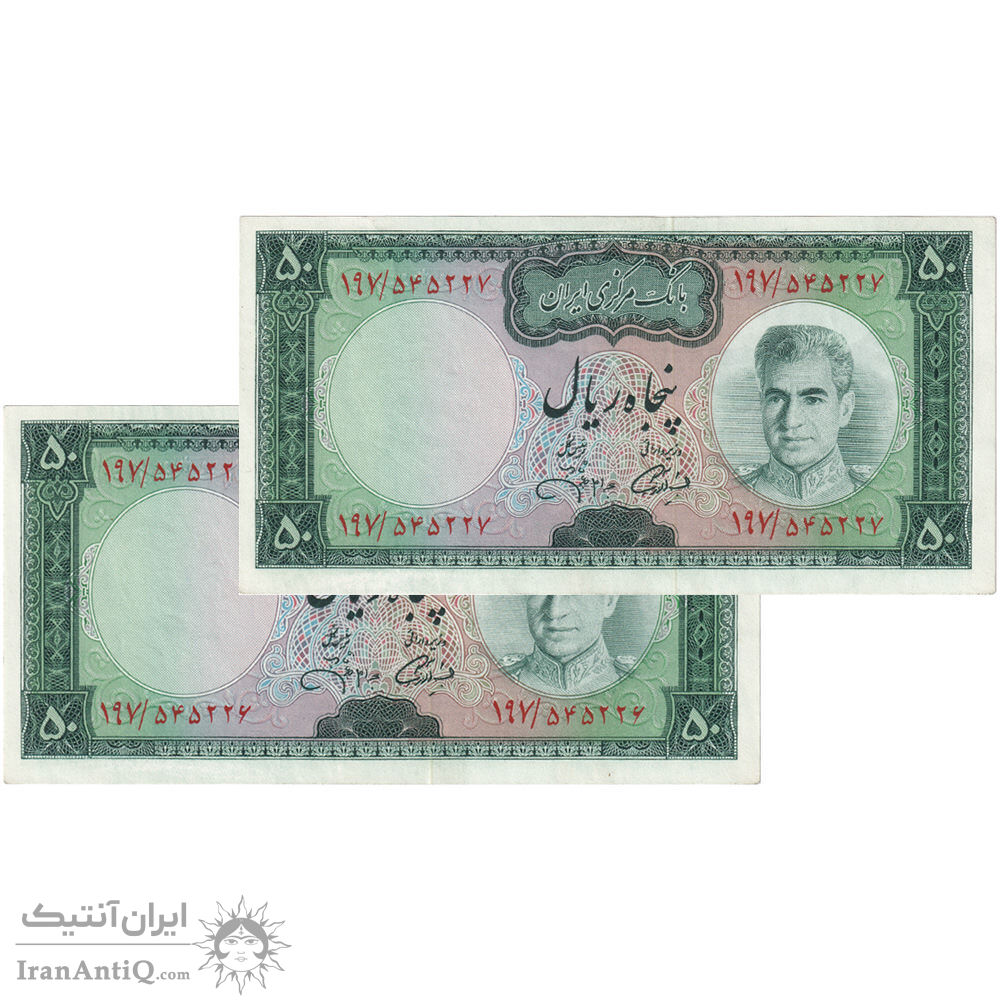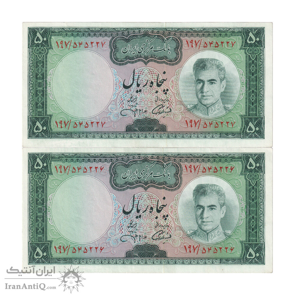 اسکناس 50 ریال (آموزگار - جهانشاهی) - جفت - AU55 - محمد رضا شاه