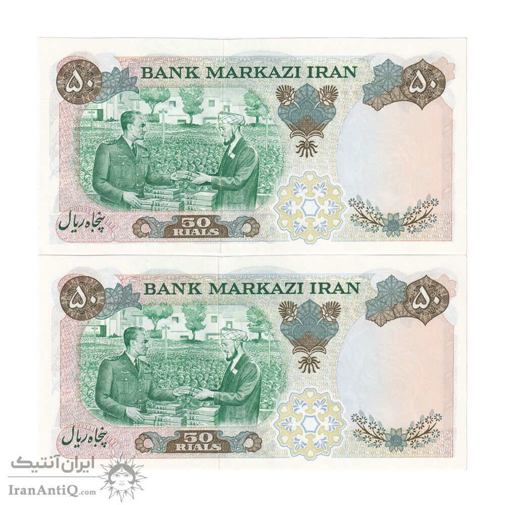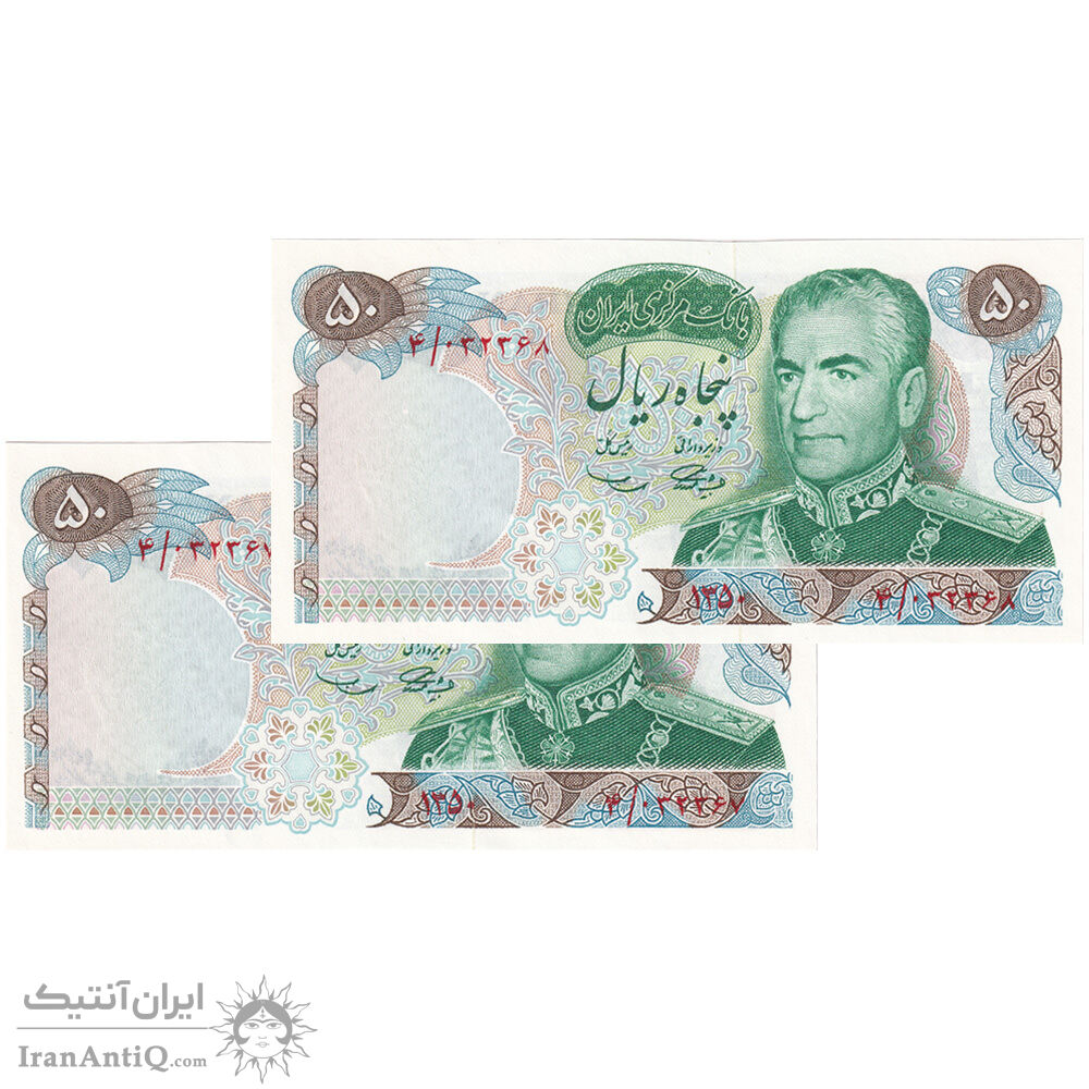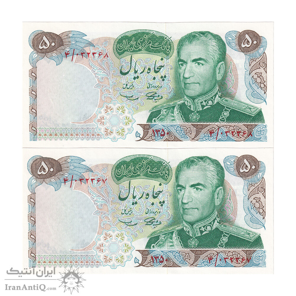 اسکناس 50 ریال 1350 (آموزگار - سمیعی) - جفت - UNC63 - محمد رضا شاه