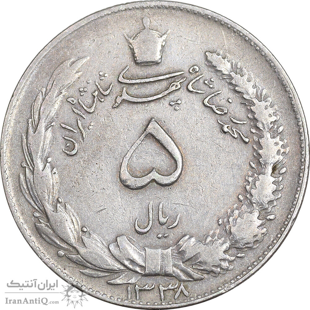 سکه 5 ریال 1338 نازک - EF40 - محمد رضا شاه