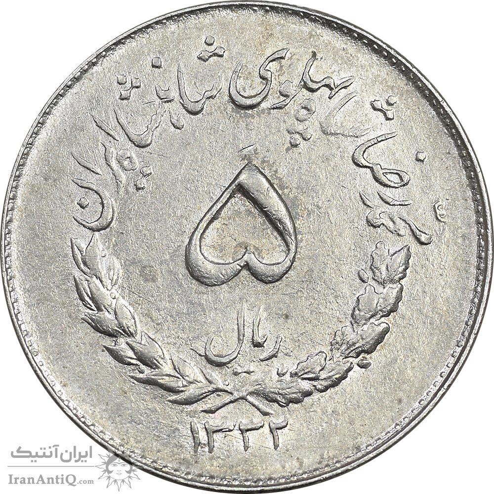 Iran 5 rials 1332 coin - AU55 - mohammad reza shah
