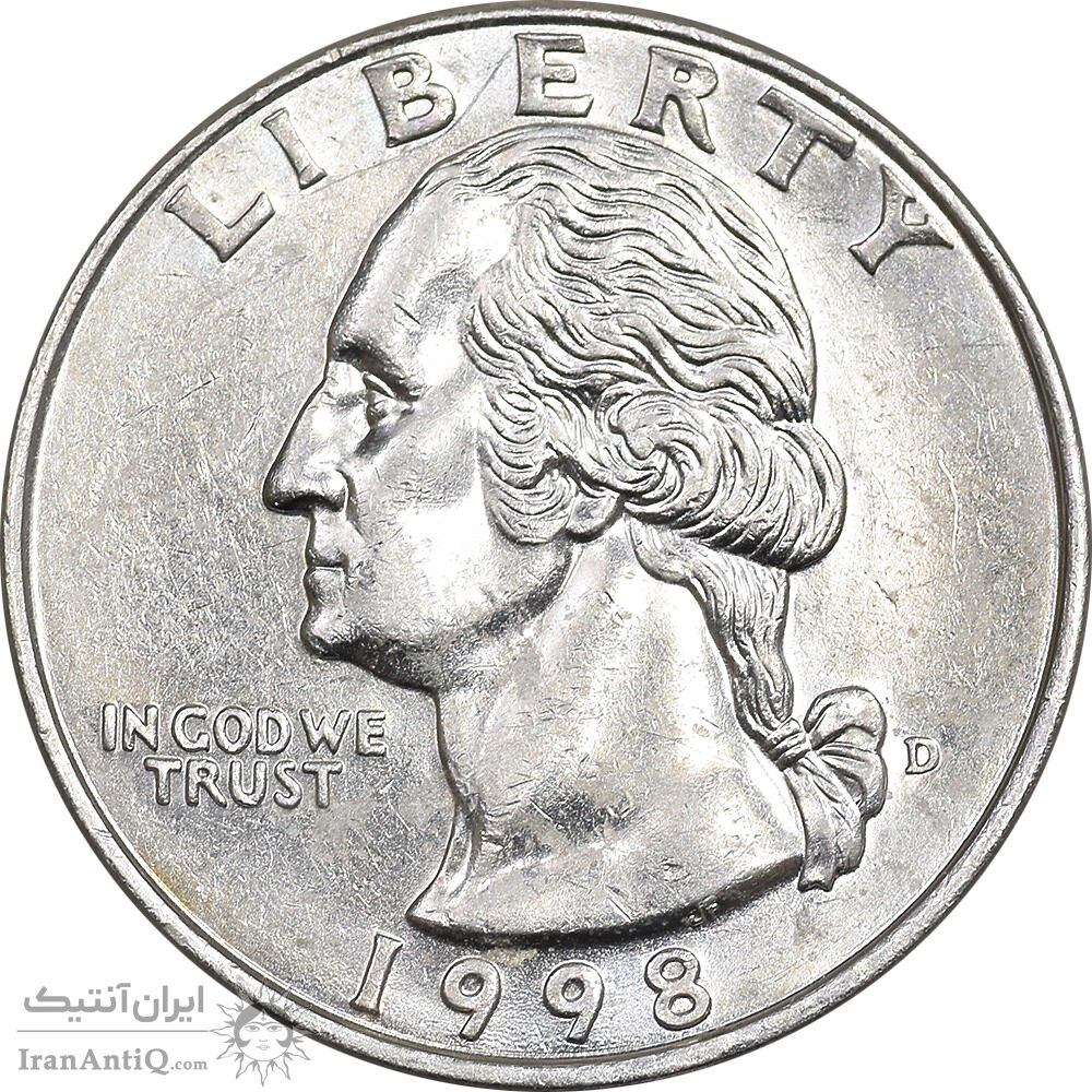 سکه کوارتر دلار 1998D واشنگتن - AU55 - آمریکا