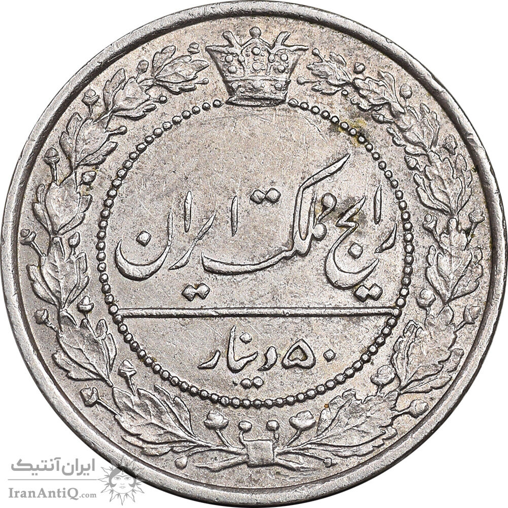 سکه 50 دینار 1307 نیکل - AU55 - رضا شاه