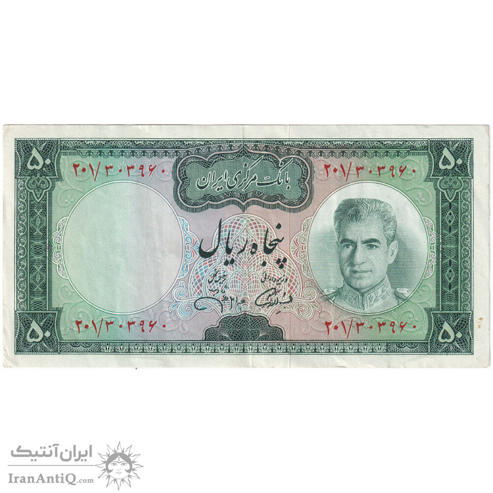 mohammad reza shah 50 rials (amuzegar - jahanshahi) iran banknote - EF40