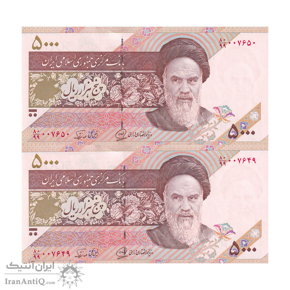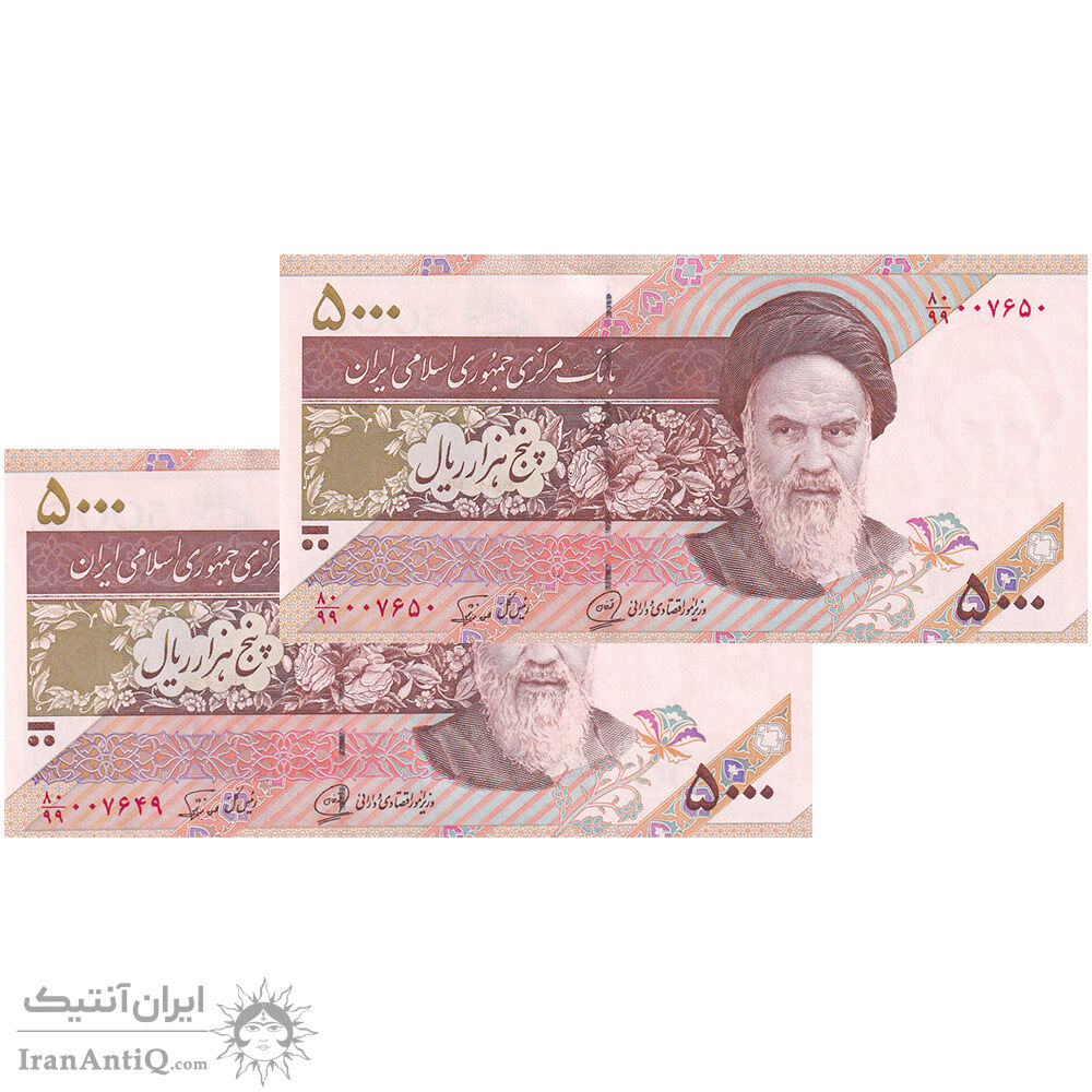 اسکناس 5000 ریال امام (محمدخان - نوربخش) جایگزین - جفت - UNC62 - جمهوری اسلامی