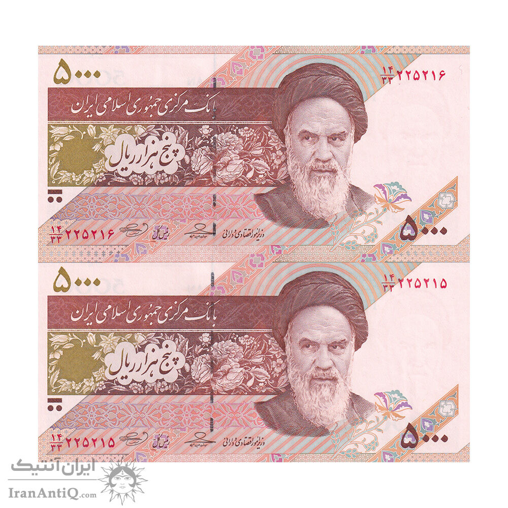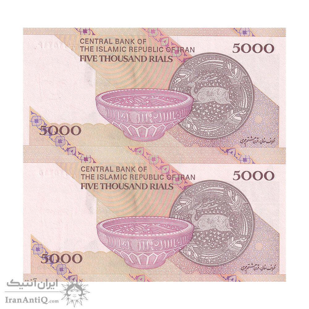 اسکناس 5000 ریال امام (حسینی - بهمنی) کاسه بشقاب - جایگزین - جفت - UNC64 - جمهوری اسلامی