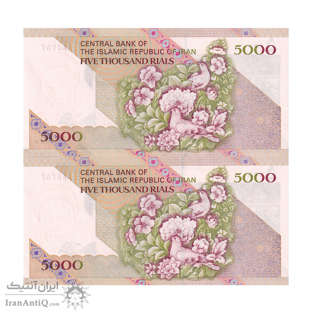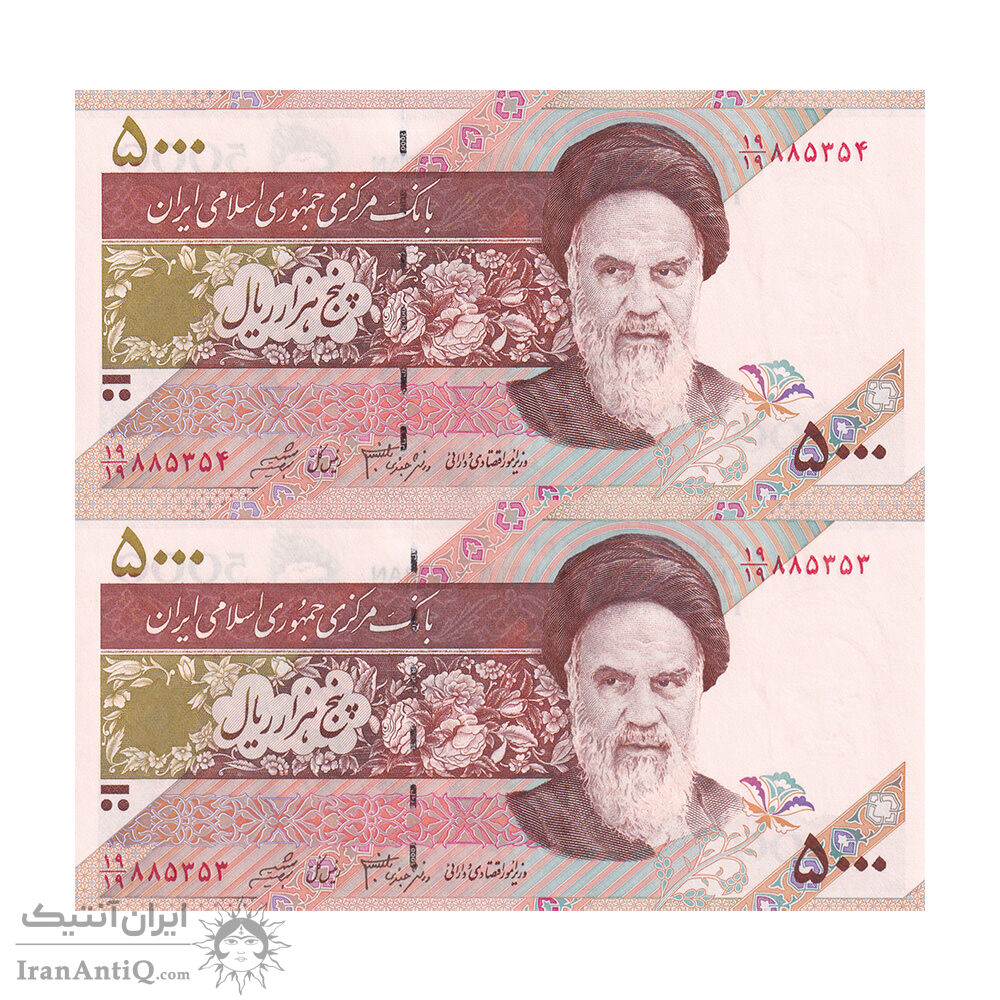 اسکناس 5000 ریال امام (جعفری - شیبانی) کسر یکسان - جفت - UNC63 - جمهوری اسلامی