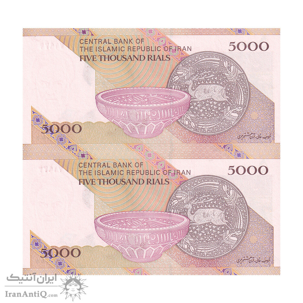 اسکناس 5000 ریال امام (طیب نیا - سیف) - نوار آرم بانک مرکزی - جایگزین - جفت - UNC62 - جمهوری اسلامی