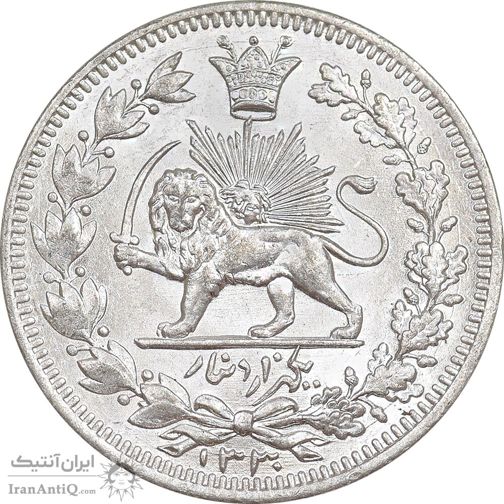 Iran 1000 dinars 1330 coin - large size - MS63 - ahmad shah