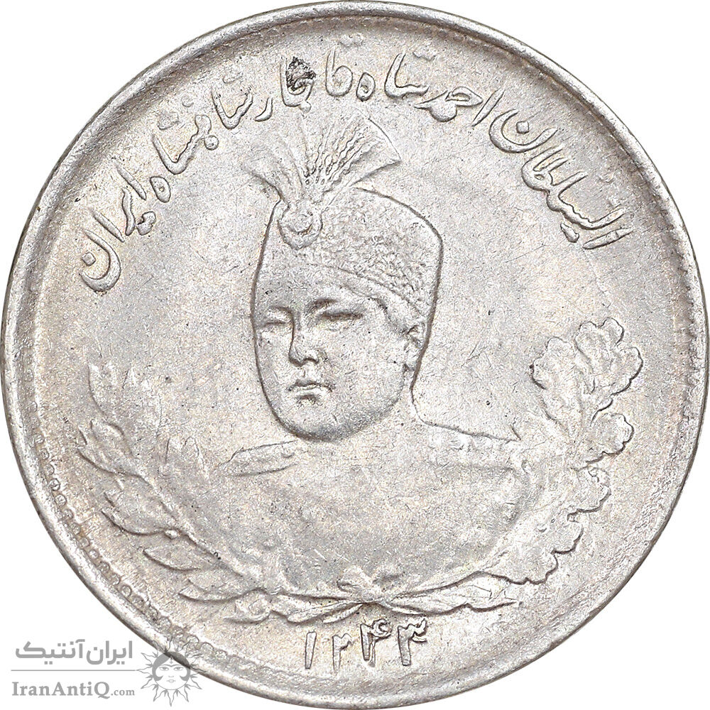 سکه 1000 دینار 1343/34 تصویری - سورشارژ تاریخ - AU55 - احمد شاه