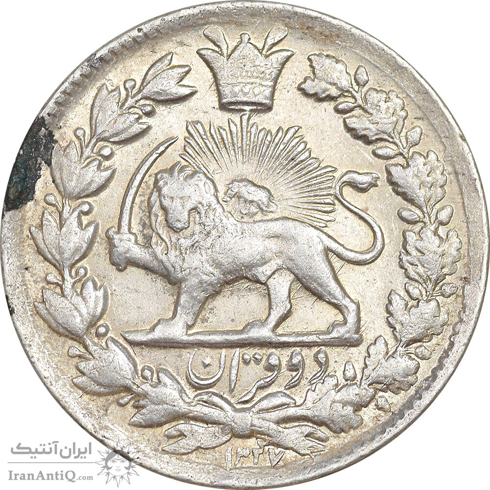 iran 2 krans 1327 coin - with mohammad ali's crown - AU55 - ahmad shah
