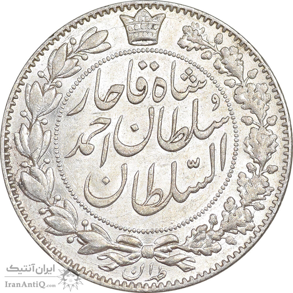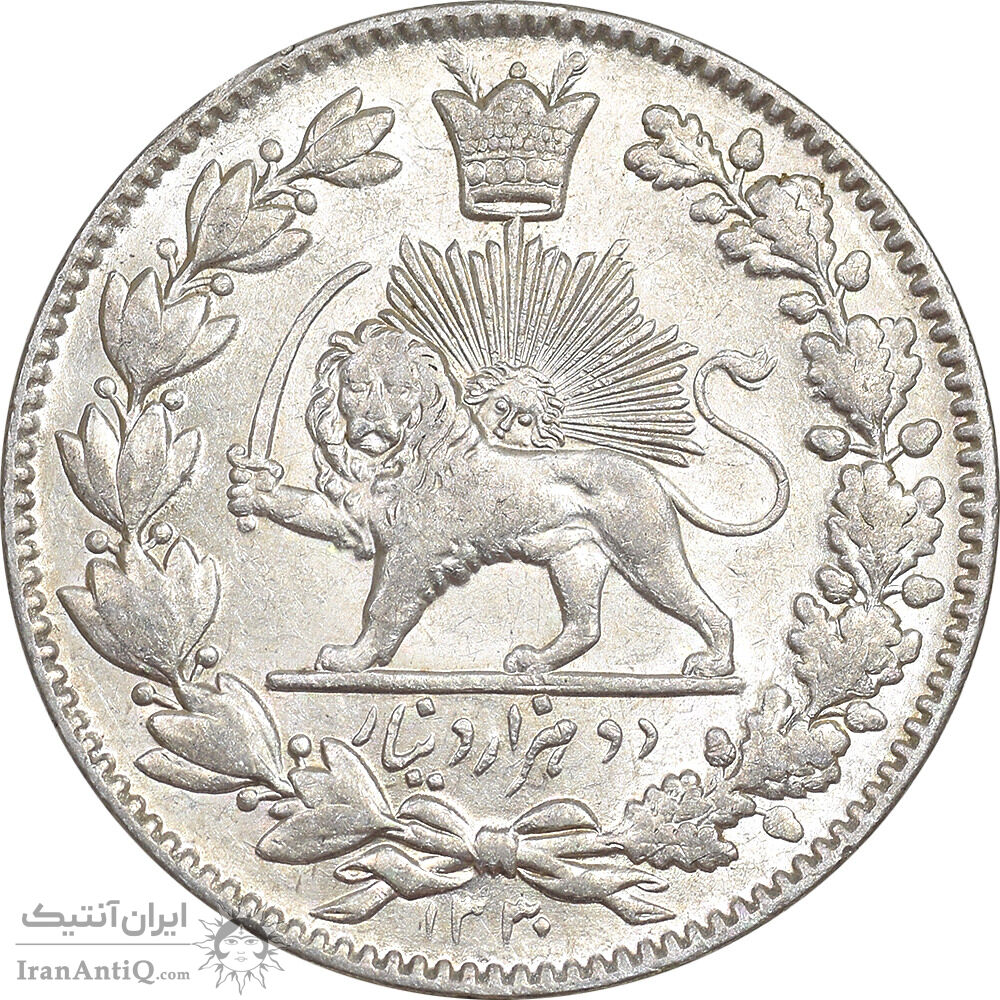 سکه 2000 دینار 1330 خطی - شیر متفاوت - AU58 - احمد شاه