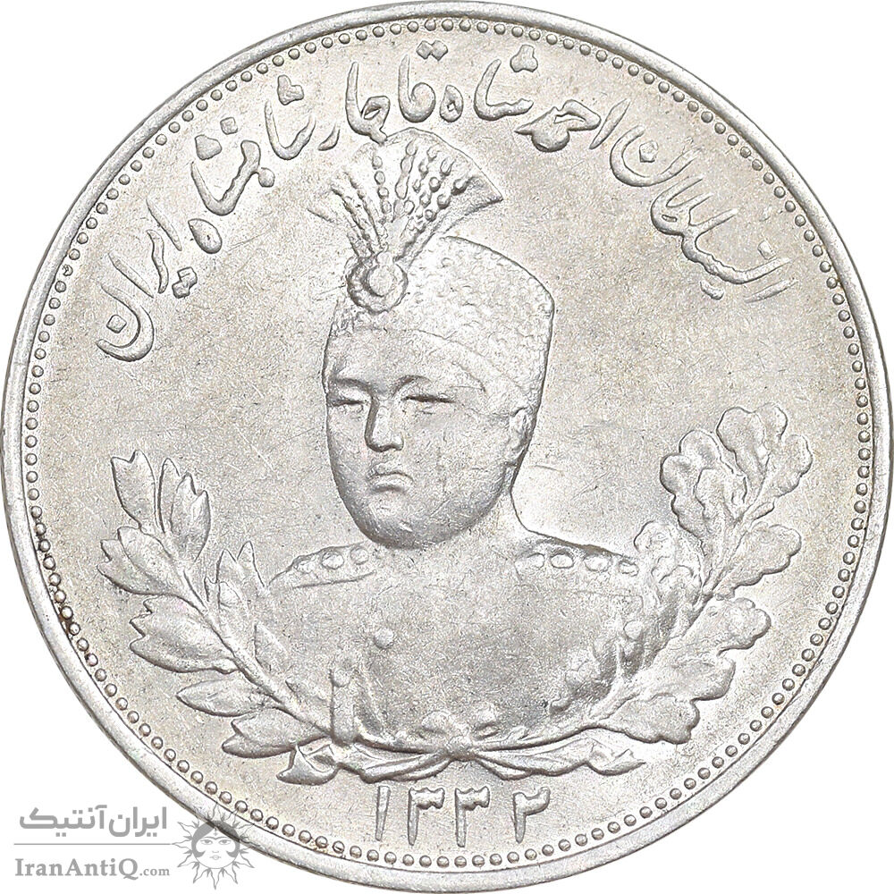 سکه 2000 دینار 1332 تصویری - صورت برجسته - MS61 - احمد شاه