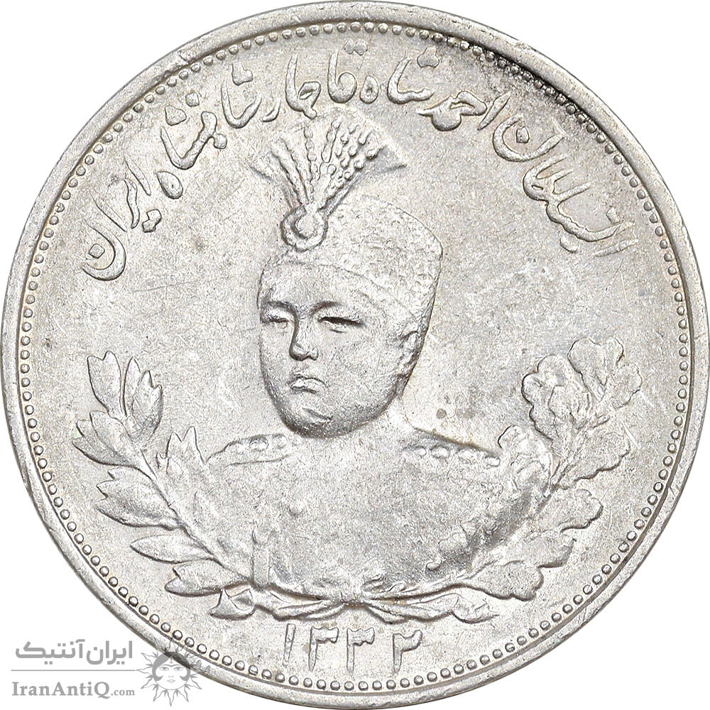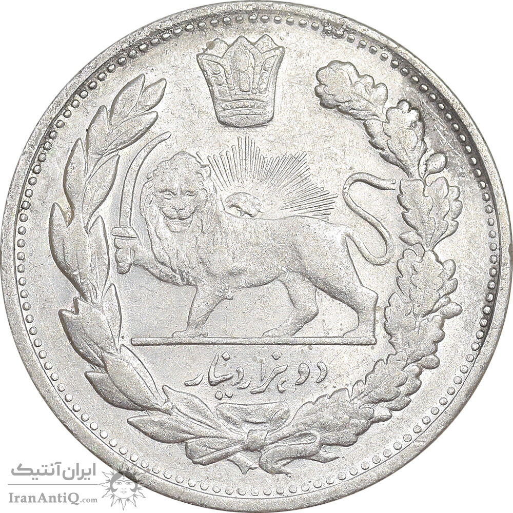 سکه 2000 دینار 1332 تصویری - صورت برجسته - AU55 - احمد شاه