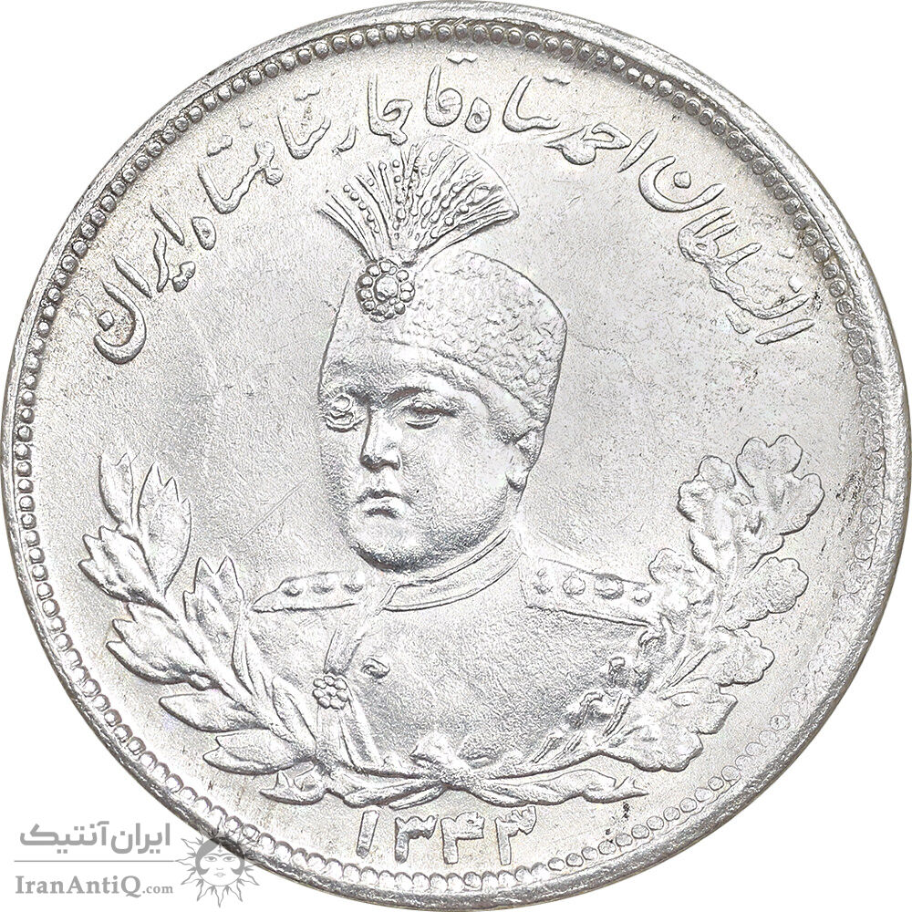 سکه 2000 دینار 1343 تصویری - AU55 - احمد شاه