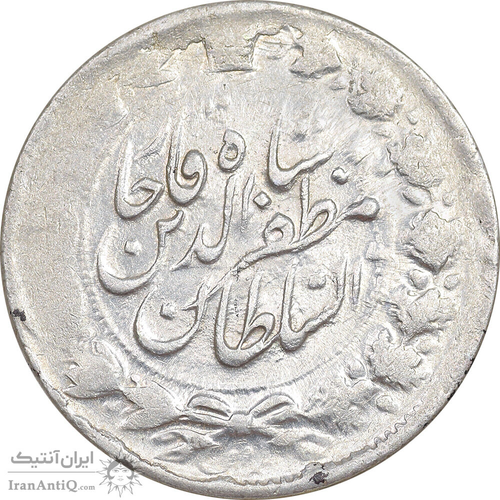 سکه 2000 دینار 1317 خطی - 1 تاریخ مکرر - AU50 - مظفرالدین شاه