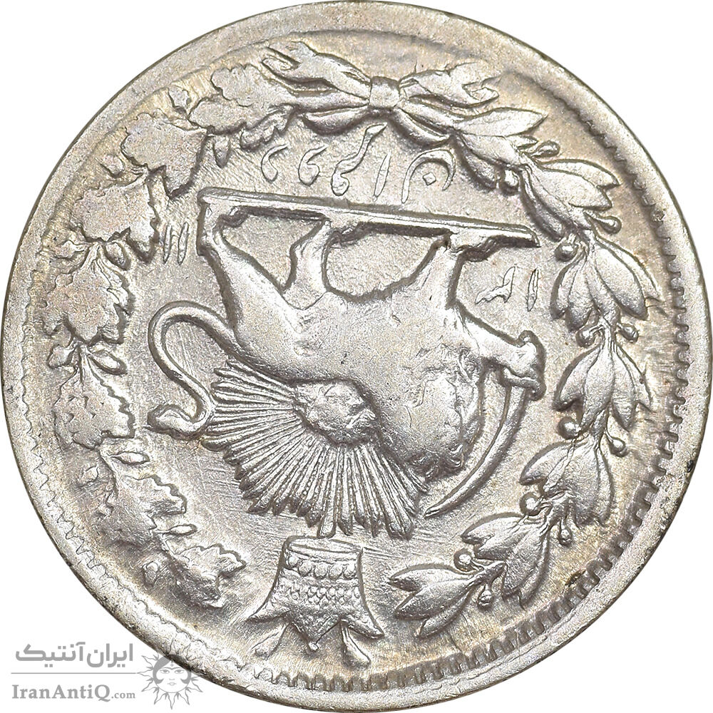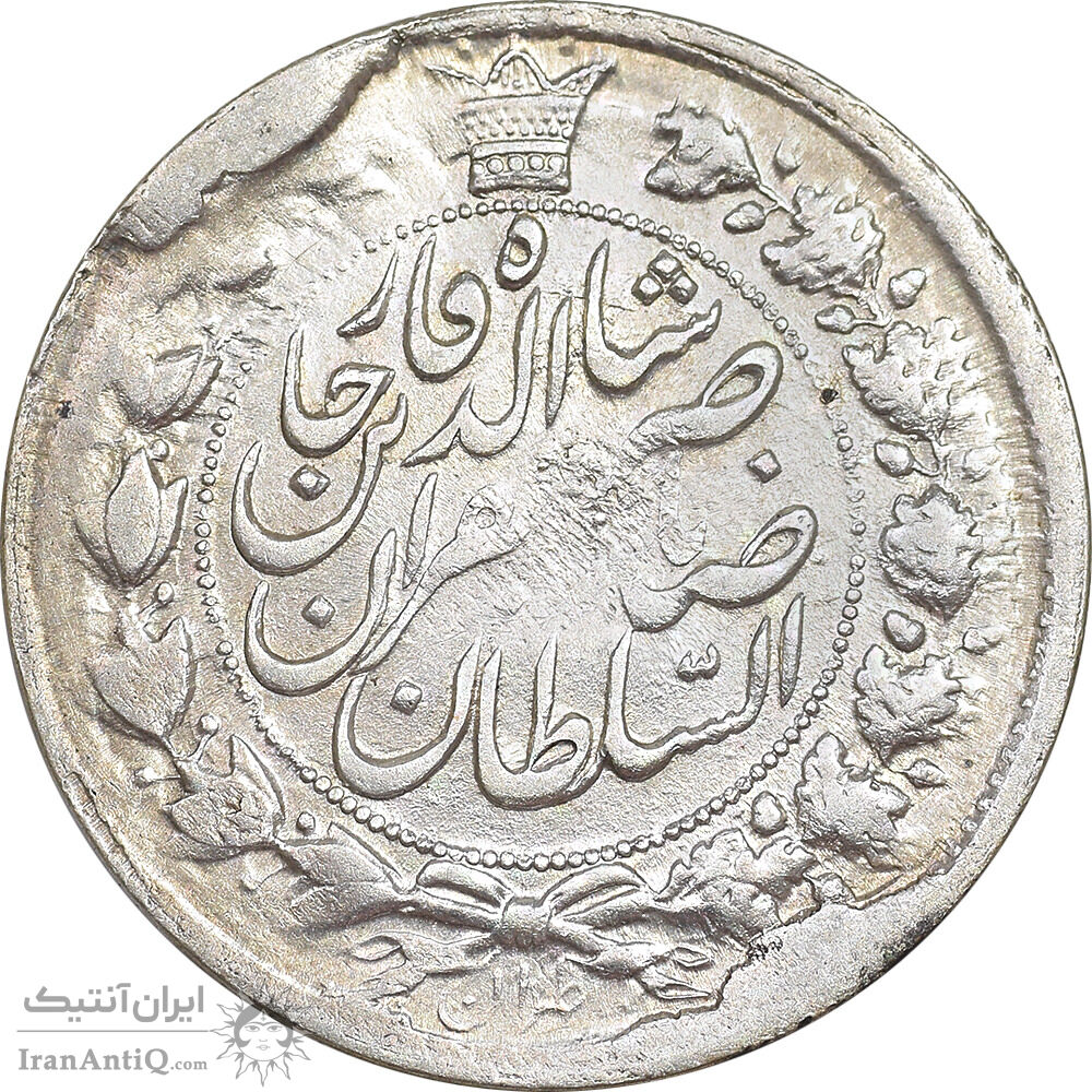 سکه 2 قران 1311 - ارور چرخش 180 درجه - VF35 - ناصرالدین شاه