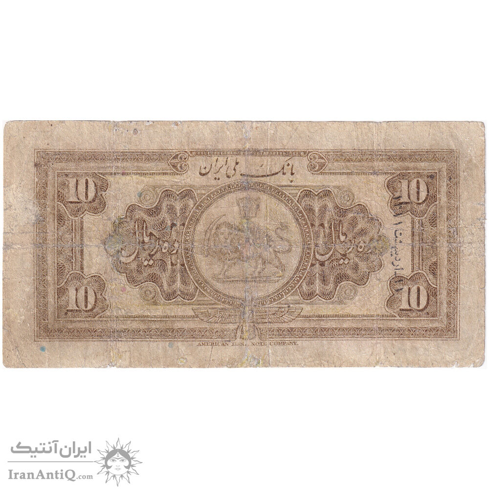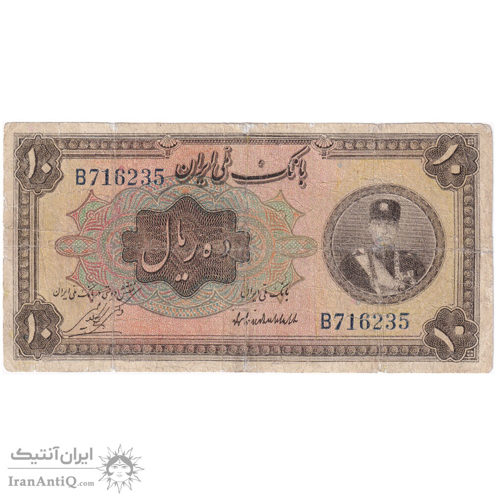 reza shah 10 rials banknote - VG