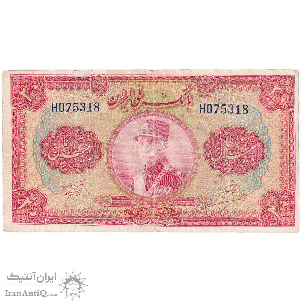 اسکناس 20 ریال کلاه بزرگ (خسروی - هژیر) - تک - VF30 - رضا شاه