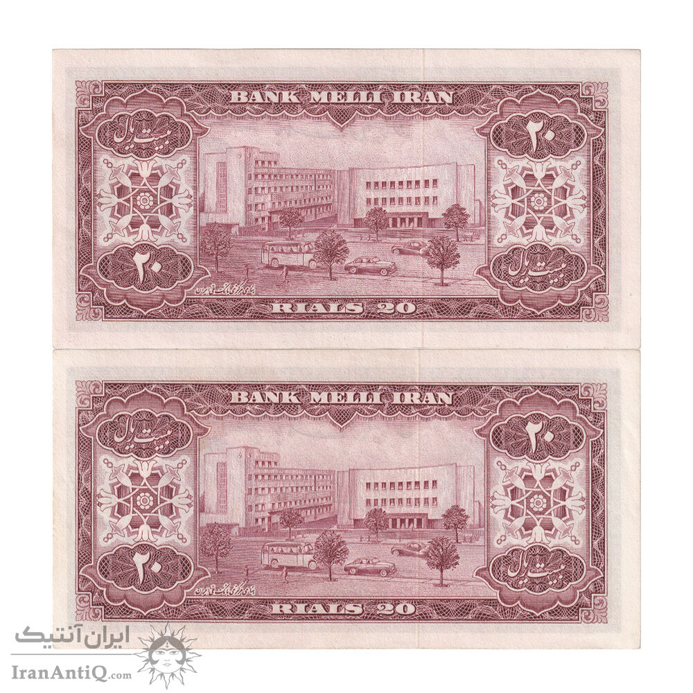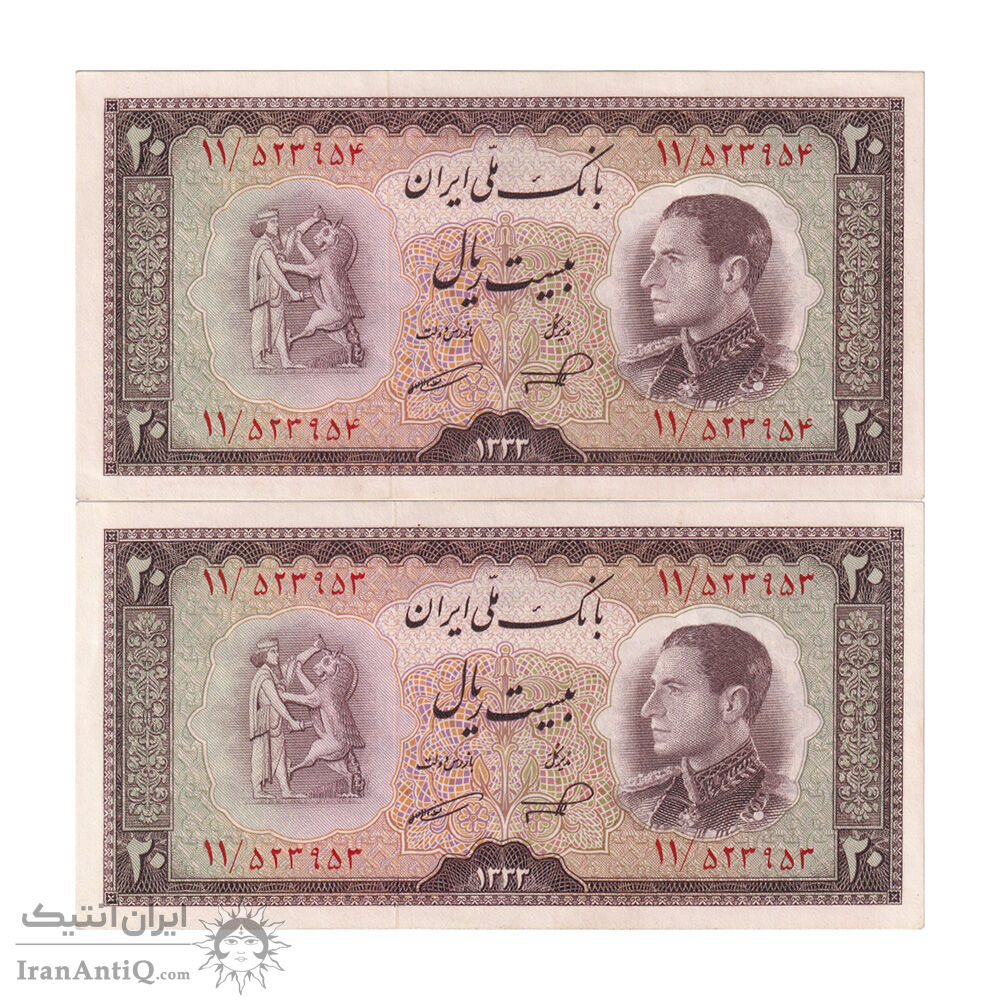 اسکناس 20 ریال 1333 - جفت - AU58 - محمد رضا شاه