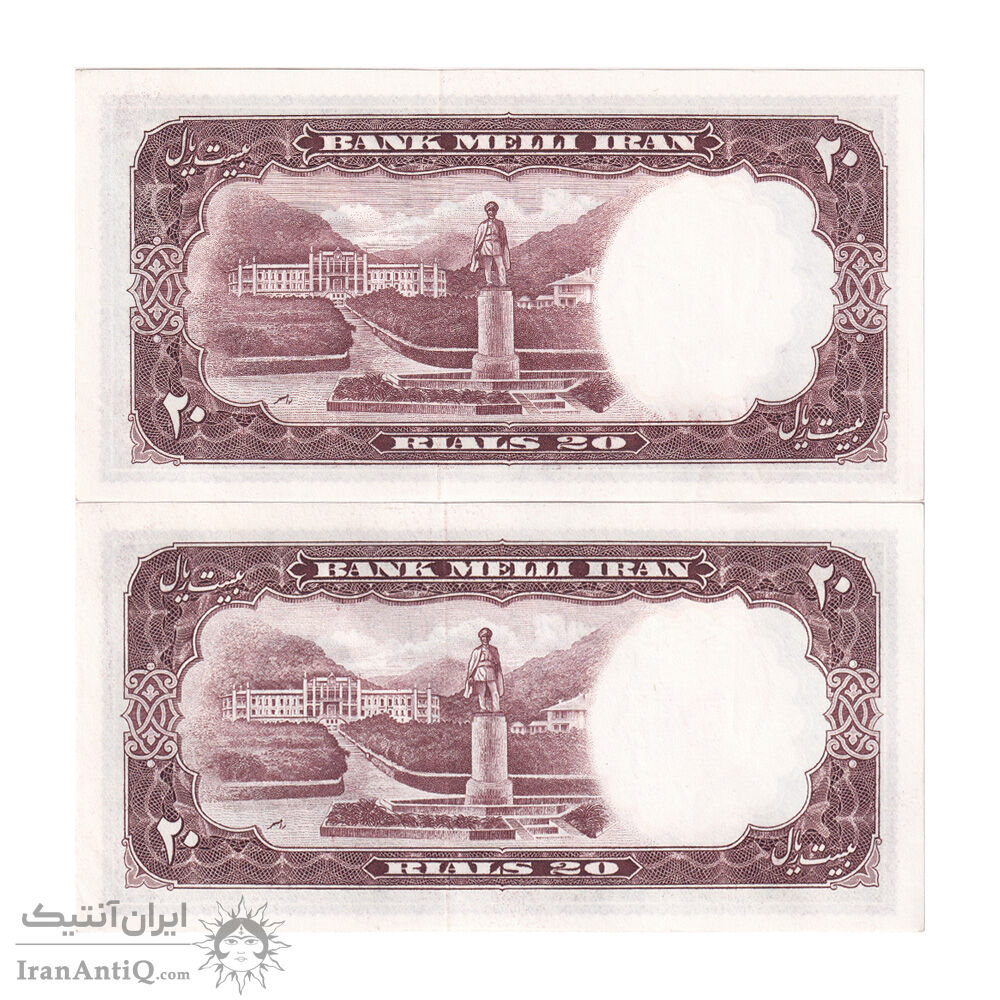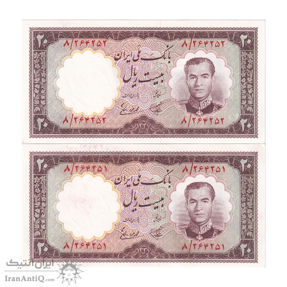 اسکناس 20 ریال 1337 - جفت - UNC61 - محمد رضا شاه