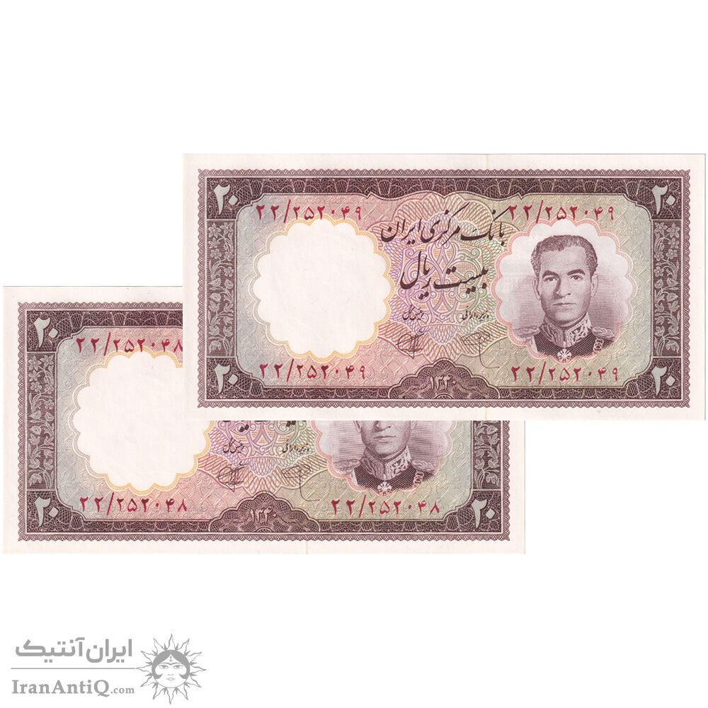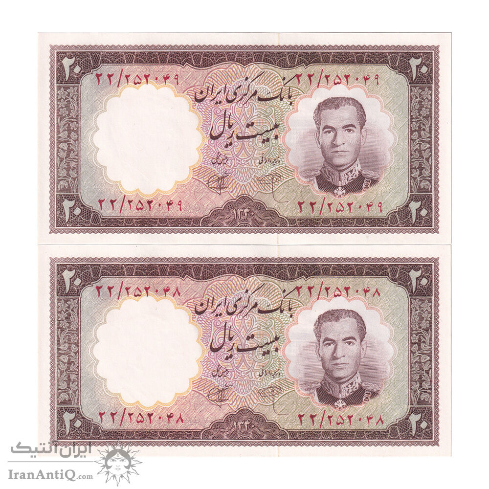 اسکناس 20 ریال 1340 - جفت - UNC63 - محمد رضا شاه